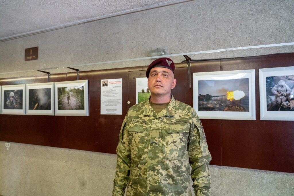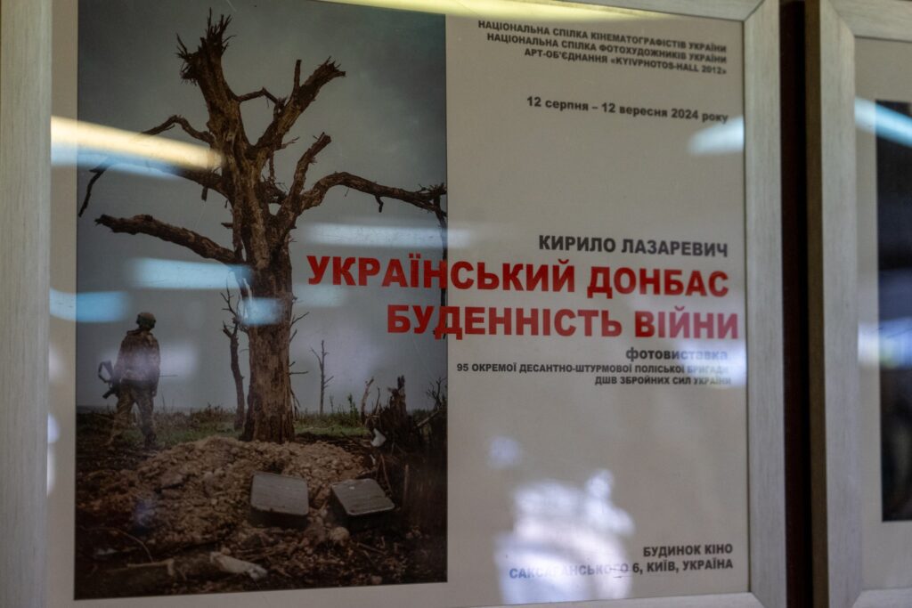 У столичному Будинку кіно триває фотовиставка 95-ї окремої десантно-штурмової Поліської бригади ЗСУ під назвою «Український Донбас. Буденність війни». Про це розповіли у відділенні комунікацій бригади.