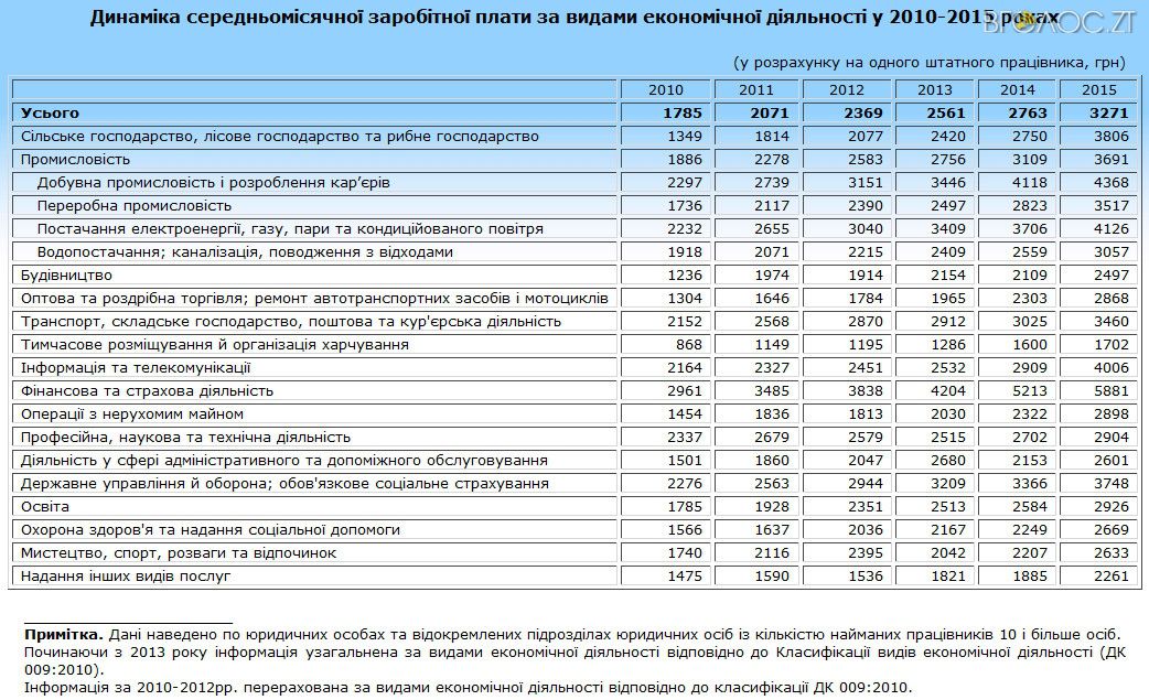 За даними головного управління статистики в Житомирської області, загальна динаміка середньомісячної заробітної плати за видами економічної діяльності минулоріч на Житомирщині становила 3 тис. 271 грн і зросла більш ніж на півтисячі порівняно з показниками 2014 року.
