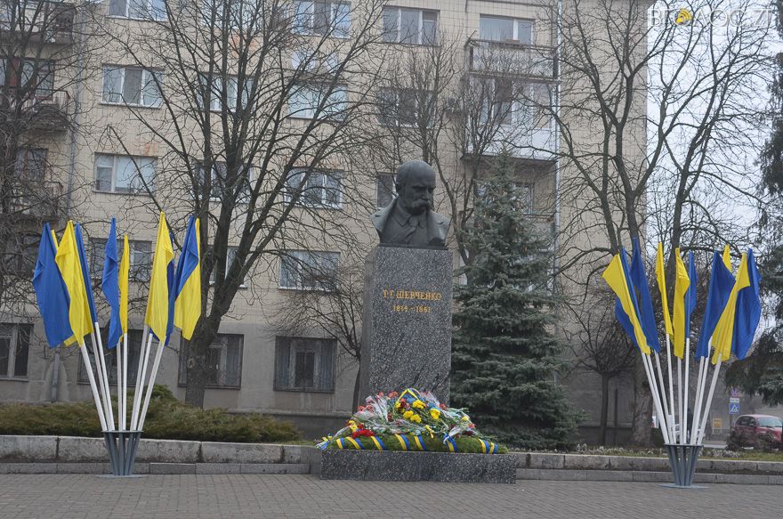 Громадськість, військовослужбовці, представники влади, громадських організацій і духовенства зібралися 9 березня біля пам’ятника Тарасу Шевченку, щоб вшанувати пам’ять письменника та культурного діяча з нагоди 202-ї річниці від Дня його народження. Загалом, участь в урочистому мітингу брали близько 500 житомирян.