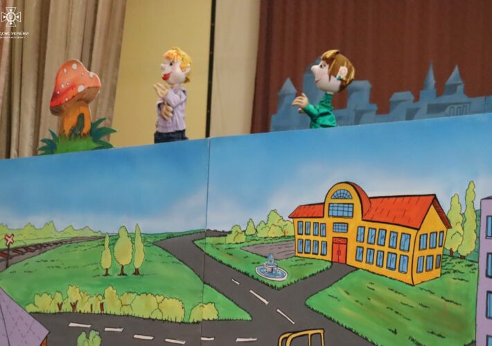 Рятувальники з акторами лялькового театру навчають ліцеїстів Житомира правилам безпеки