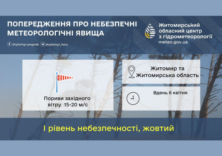 Прогноз погоди на день 05 квітня по Житомирській області