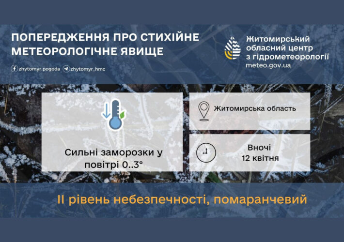 Прогноз погоди на день 10 квітня по Житомирській області