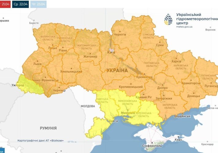 Вдень 23 квітня у Житомирі та Житомирській області пориви північно-західного вітру 15-20м/с. (І рівень небезпечності - жовтий)