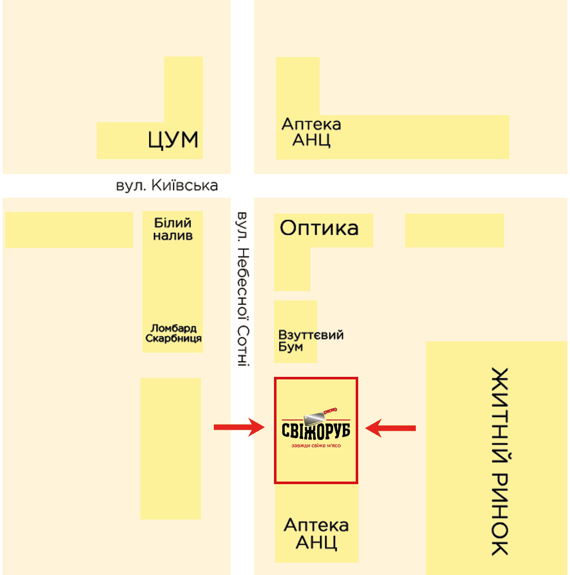 Тепер здивувати сім’ю й гостей неймовірно смачною м’ясною стравою буде ще простіше! Тому що у вівторок , 3 серпня, по вул. Небесної Сотні, 14 в Житомирі відкривається новий м’ясний магазин «Свіжоруб». Очікується, що він стане «гарячою точкою» на карті міста, завдяки особливому ставленню до свіжого м’яса.