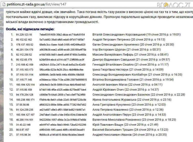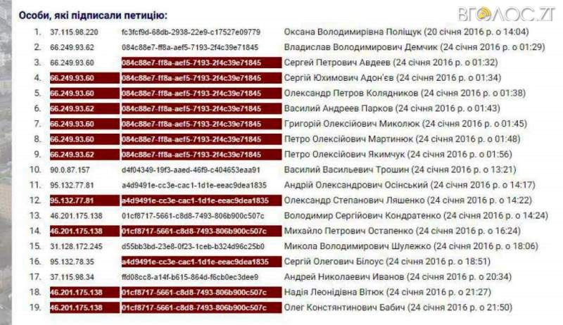 «24 січня на сайті під петицією, опублікованою 22 січня, зафіксовано «накрутку» голосів. Оскільки відповідно до Закону України «Про звернення громадян» органи місцевого самоврядування під час збору підписів на підтримку електронної петиції зобов’язані забезпечити недопущення автоматичного введення інформації, у тому числі підписання електронної петиції, без участі громадянина, ми ввели обмеження – заборону голосувати кілька разів з однієї ІР-адреси протягом однієї доби», – повідомила Прокоф’єва.