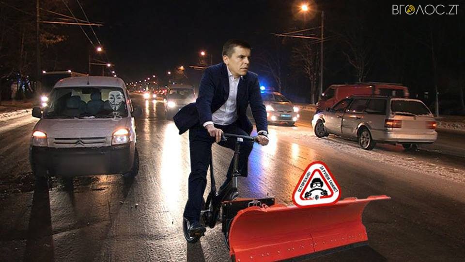 Для нашої влади та комунальних підприємств зима прийшла раптово. І якщо автомобільні дороги впродовж дня чистили по кілька разів, то на тротуарах був добрячий каток. На піску зекономили. Врешті проблему вирішила погода, коли все розтануло і попливло… На тему прибирання снігу з’явилося чимало фотожаб у соціальних мережах. Окрема серія – про радника міського голови Мойсеєва, який на початку року перед телевізійними камерами особисто відкидав сніг лопатою. У соцмережах кликали його на допомогу й у цей снігопад.