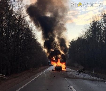 Нагадаємо, ДТП трапилось на 149 км автодороги. Вогонь повністю знищив автомобіль. Особу водія та обставини аварії встановлюють працівники поліції.