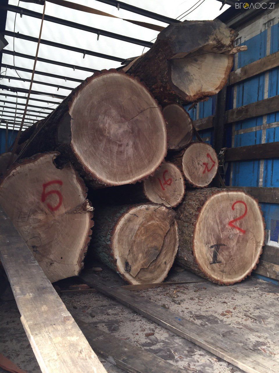 Правоохоронці затримали на трасі Житомир–Сквира, неподалік села Івниця Андрушівського району, вантажівку, в якій зловмисники перевозили 20 куб. м дубових лісоматеріалів. Серед деревини, що задекларована у супровідній документації, співробітники спецслужби виявили приховані дубові колоди діаметром 75-90 сантиметрів, що свідчить про вік дубів у 100-130 років. Про це повідомляє прес-служба управління СБУ в Житомирській області.