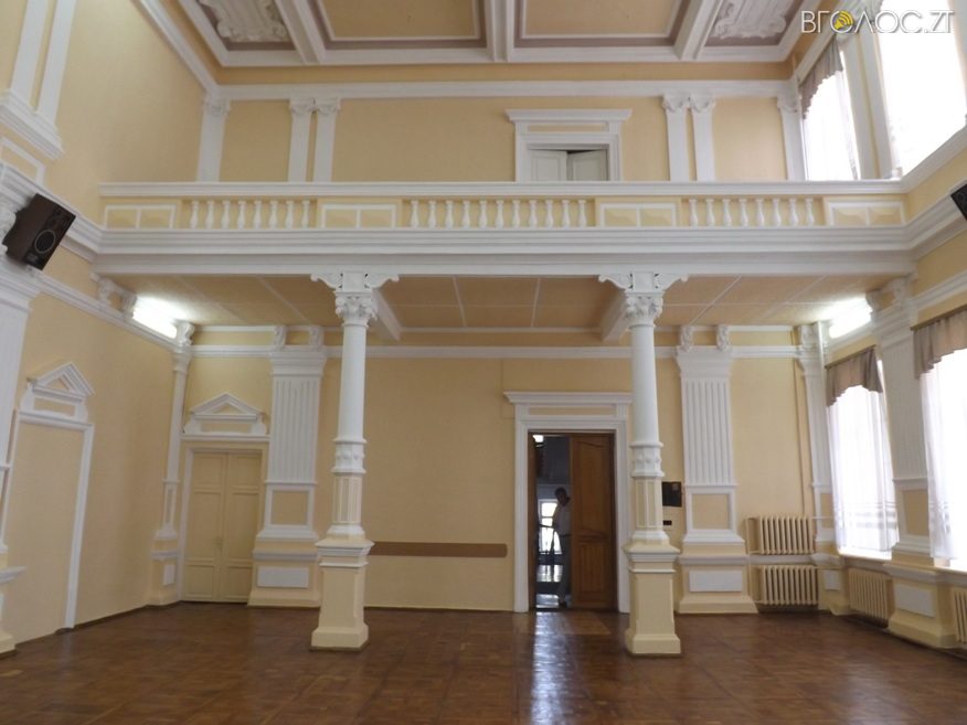 Ремонт здійснювали за благодійні кошти. Робота дуже копітка, адже зала прикрашена колонами, ліпниною, а в центрі стелі, відстань до якої близько 15 метрів, – велика люстра.