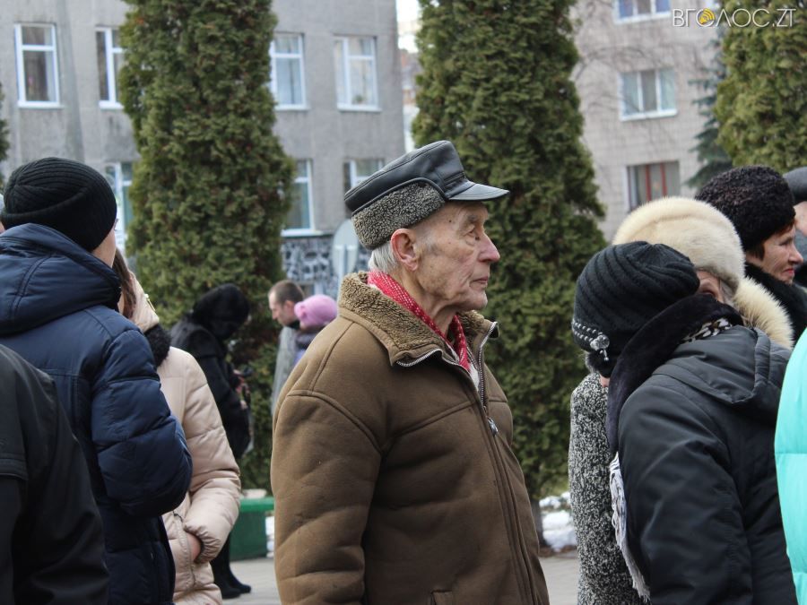 Біля входу в Головне управління Національної поліції у Житомирській області 5 лютого об 11 годині розпочався мітинг, на якому зібралися близько сотні людей.