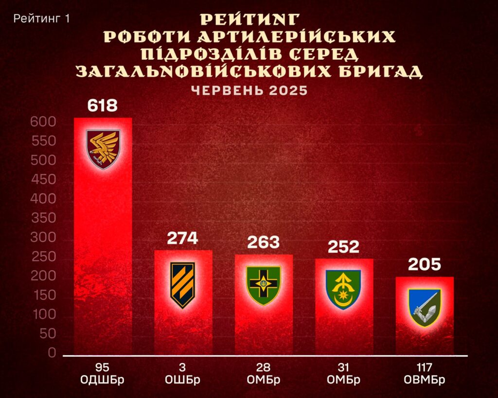 За червень артпідрозділи славетної 95-ки нагатили стільки ворожих цілей, що посіли перше місце серед загальновійськових бригад ЗСУ. Про це повідомили у відділі комунікації 95 ОШБР.