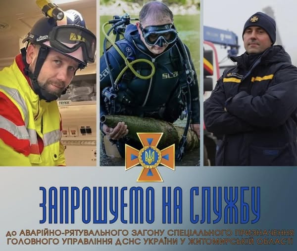Запрошуємо на службу до Аварійно-рятувального загону спеціального призначення Головного управління ДСНС України у Житомирській області.