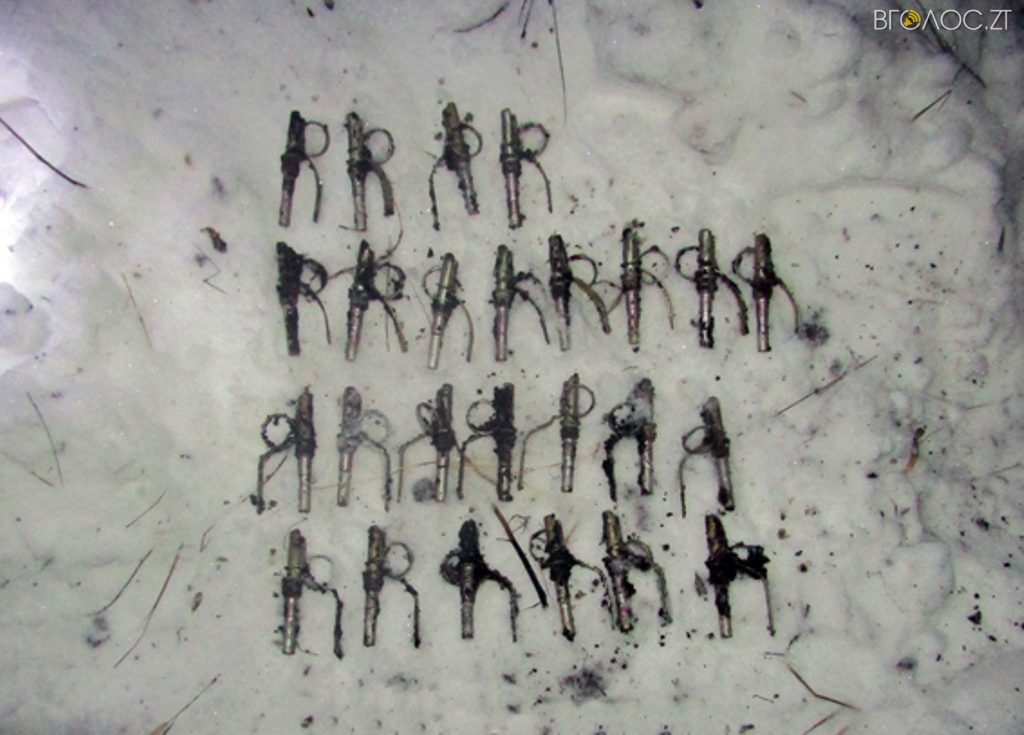 «20 січня до чергової частини Бердичівського відділу поліції звернувся 31-річний житель райцентру із повідомленням, що він знайшов металеві предмети, зовні схожі на гранати. На місце події виїхала слідчо-оперативна група поліції та фахівці-вибухотехніки ГУНП в Житомирській області. Як з’ясували правоохоронці, в землі було прикопано 25 корпусів гранат РГД-5 та Ф-1. В іншому сховку знаходились запали до них. Усе виявлене було вилучено та направлено на експертне дослідження», – йдеться у повідомленні.
