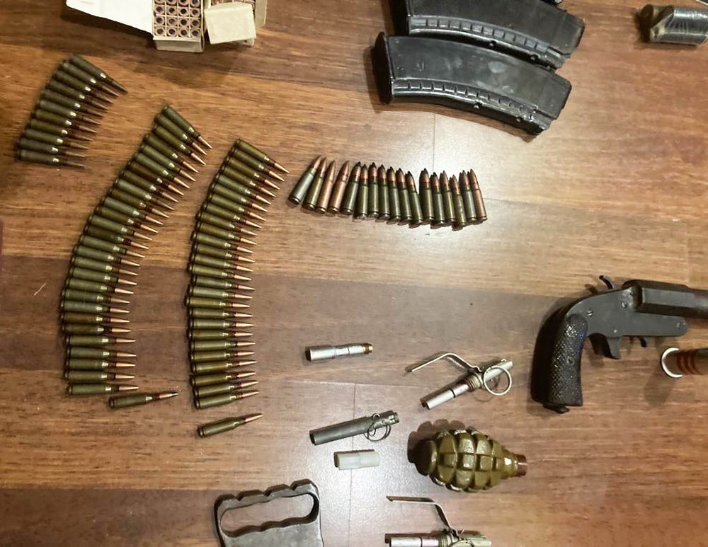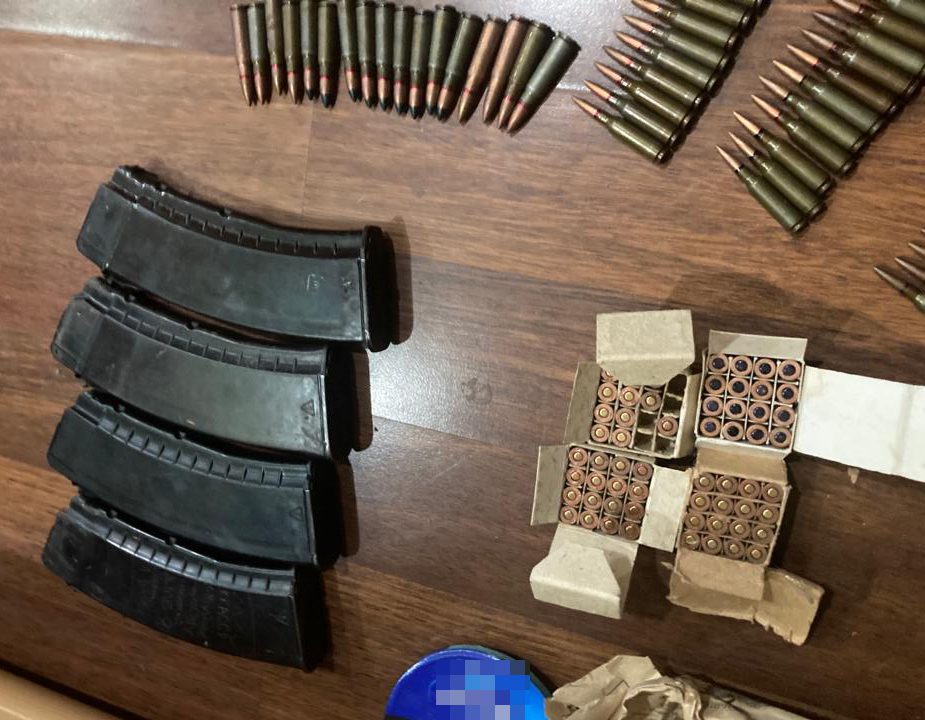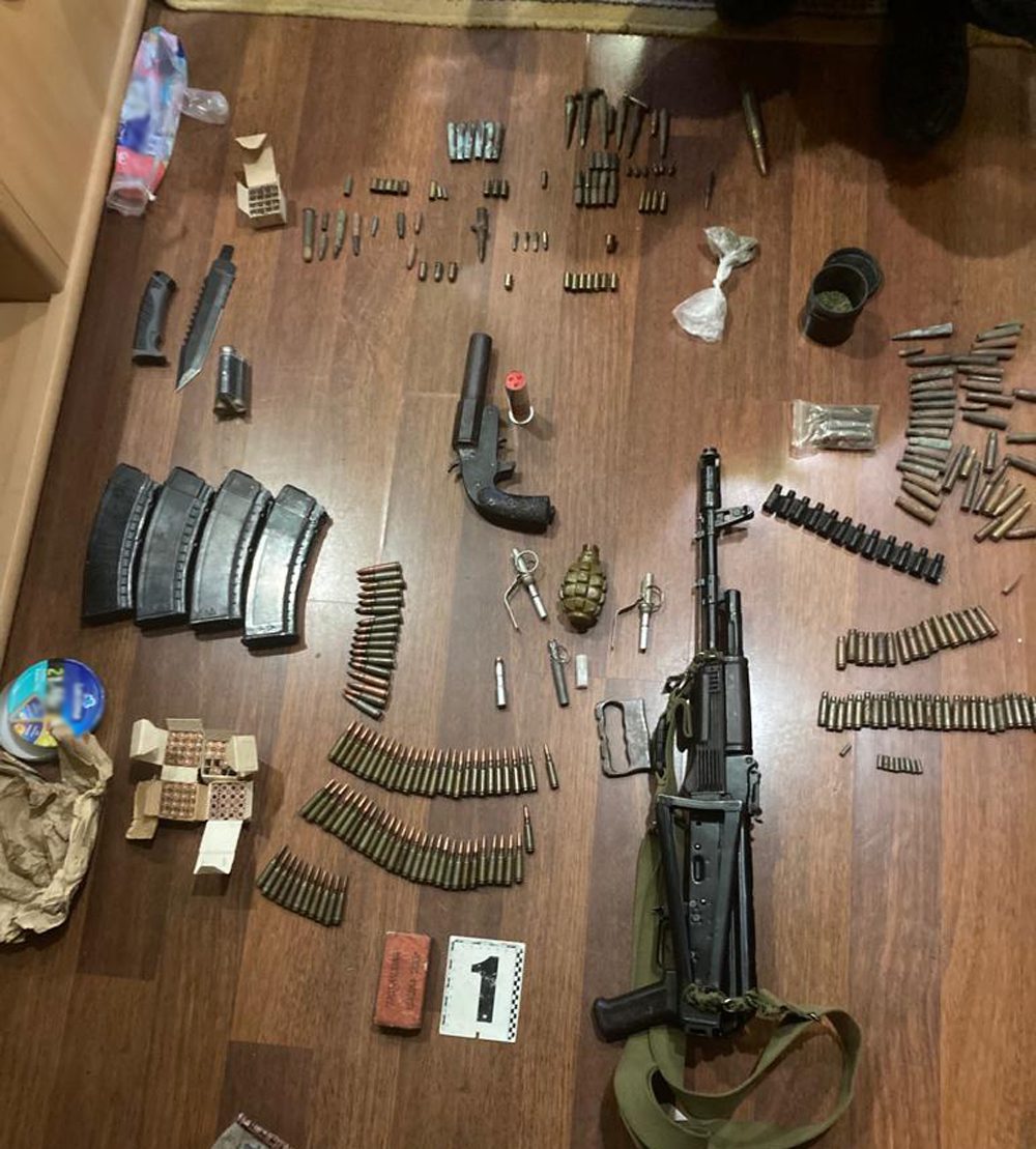 Поліцейські вивели дебошира на вулицю, застосувавши фізичну силу, та провели поверхневий огляд. У результаті виявили у кишені його куртки гранату Ф-1. У ході подальшого обшуку у домівці виявили також автомат АКС-74, понад півсотні набоїв різного калібру, тротилову шашку, сигнальні ракети, а також наркотичні засоби, ймовірно марихуану, та інше.