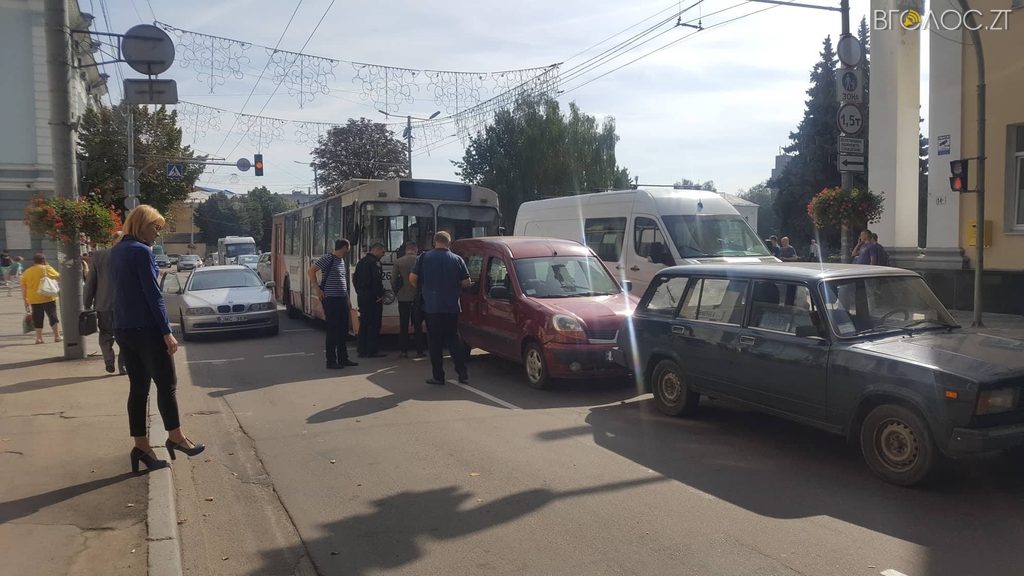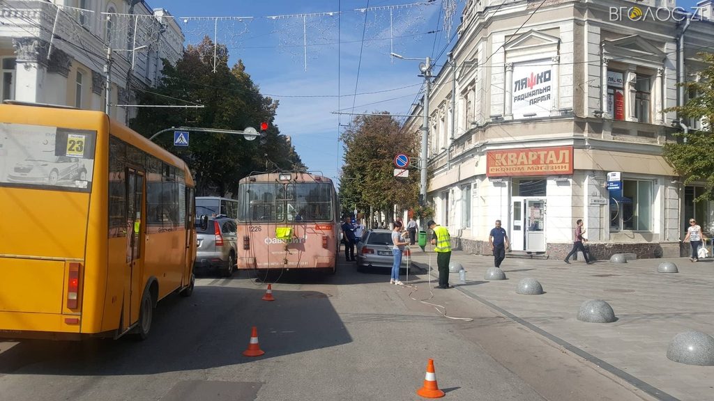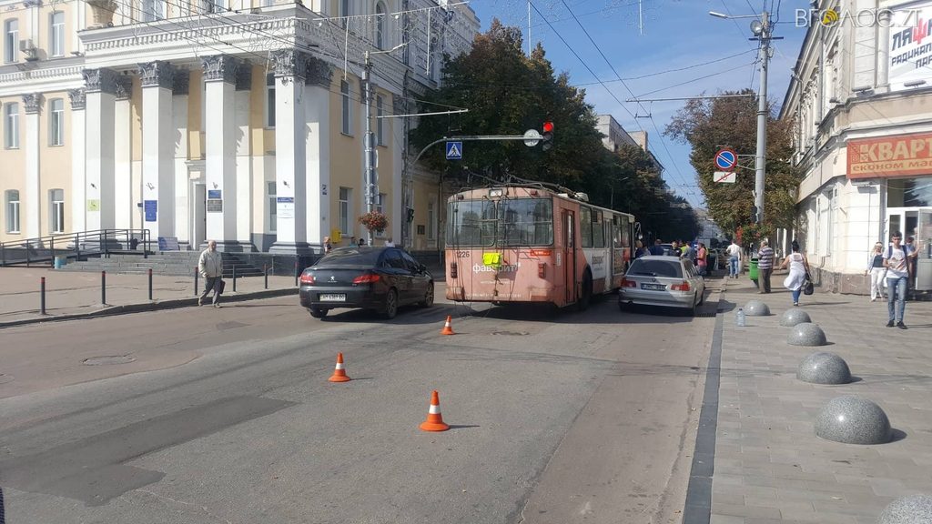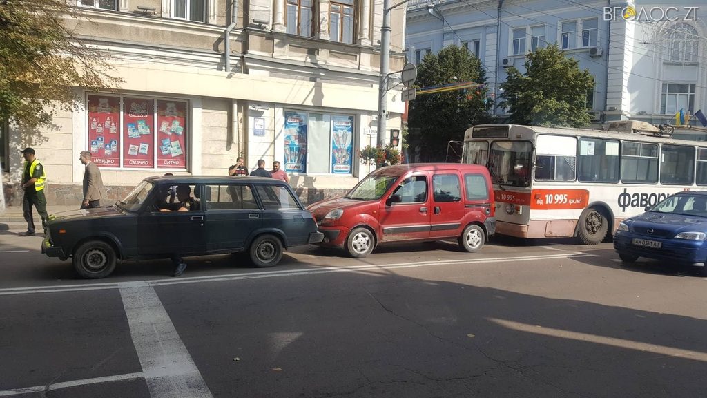 У Житомирі на вулиці Великій Бердичівській, поблизу будівлі міської ради, сталася дорожньо-транспортна пригода за участю тролейбуса та двох автомобілів. Про це “Вголос.zt” повідомили очевидчі події.