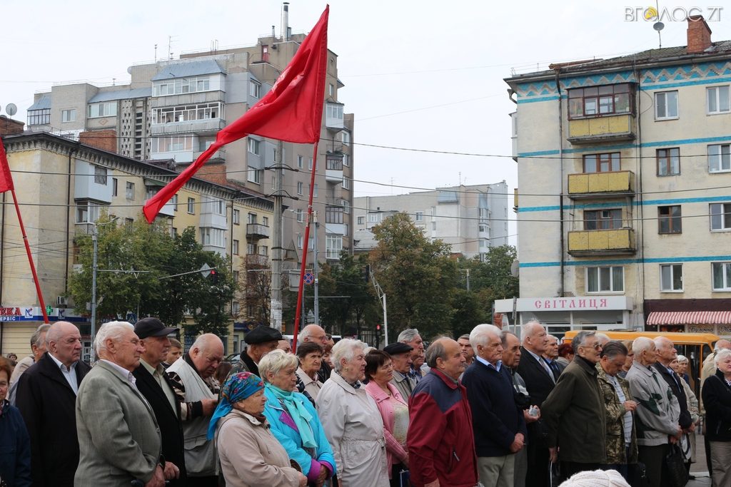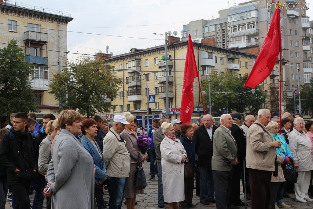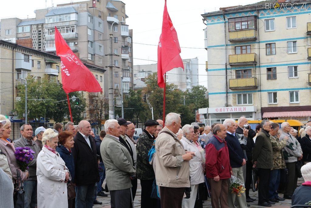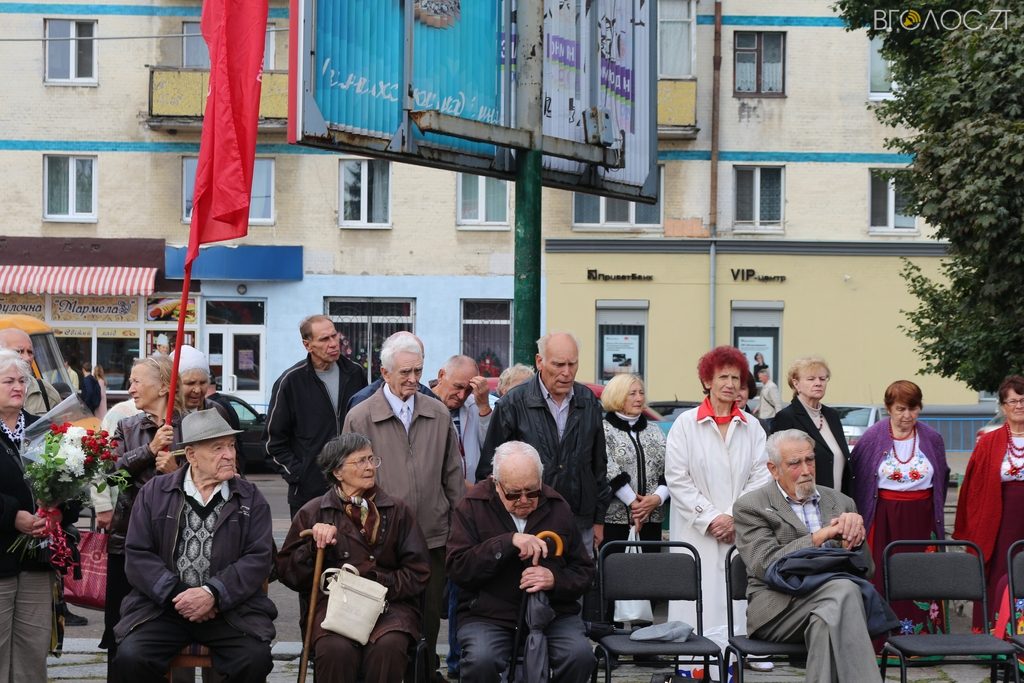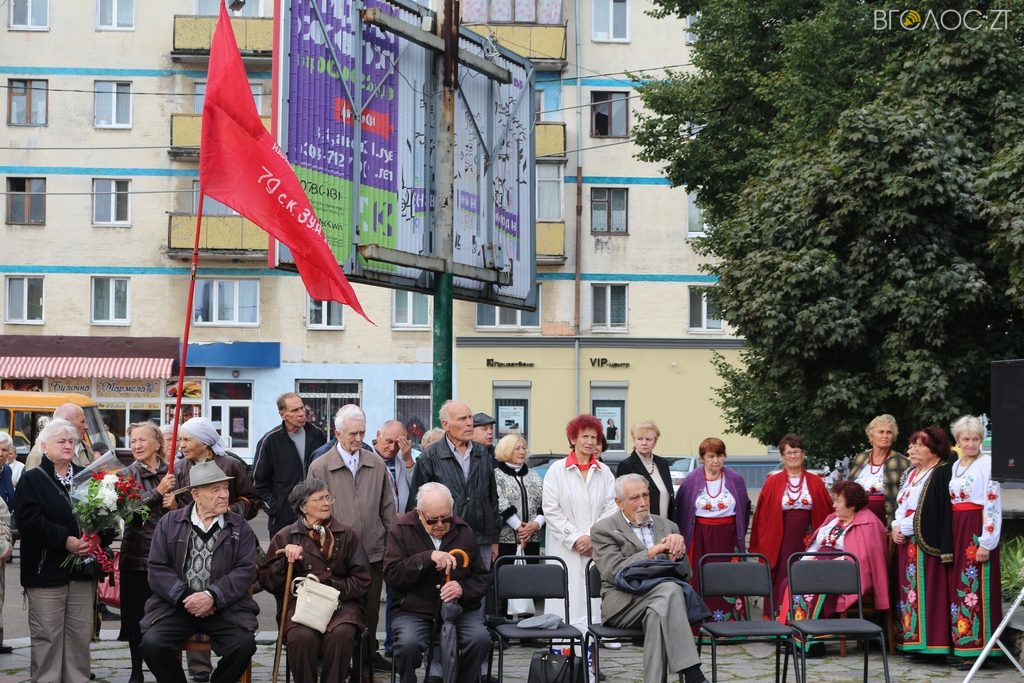 Ветерани-підпільники вітали самі себе. Під червоними прапорами, але не комуністичними, а з назвами партизанських загонів, у складі яких більшість із них воювали проти німецько-фашистських окупантів. Ані представників влади, ані школярів із квітами на заході не було.