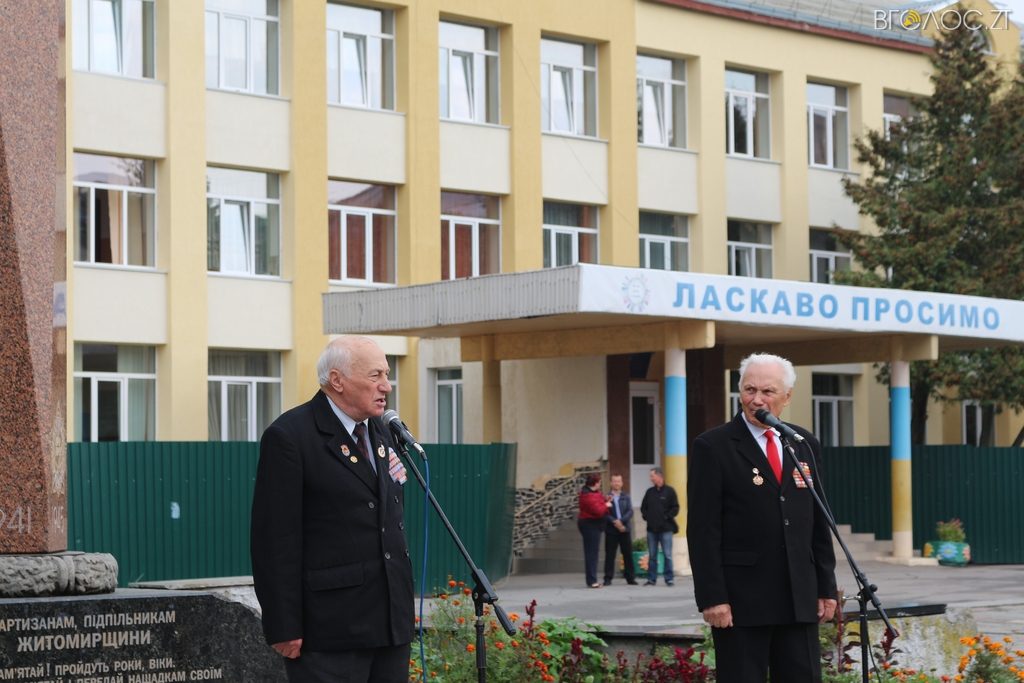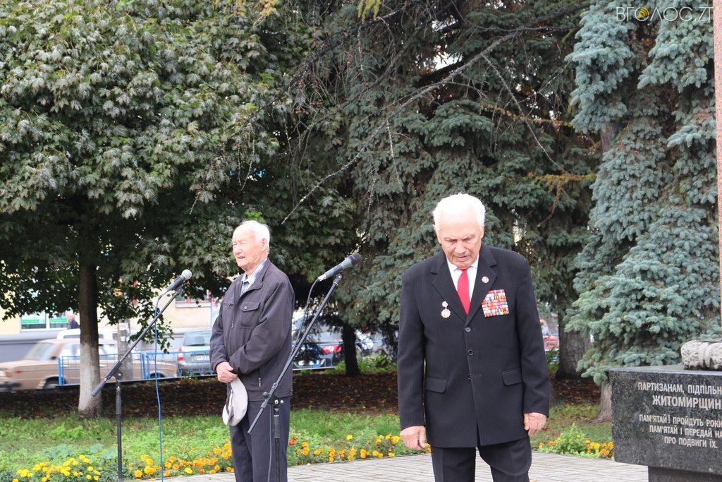 Близько півсотні житомирян похилого віку прийшли 22 вересня до пам’ятника партизанам-підпільникам біля школи №17 з нагоди Дня партизанської слави.