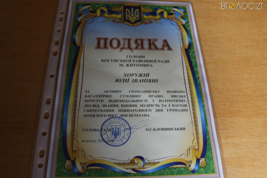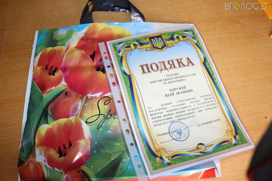 З нагоди Міжнародного дня людей похилого віку 3 жовтня для пенсіонерів та ветеранів у сесійній залі Богунської районної ради міста Житомира відбулися урочистості.