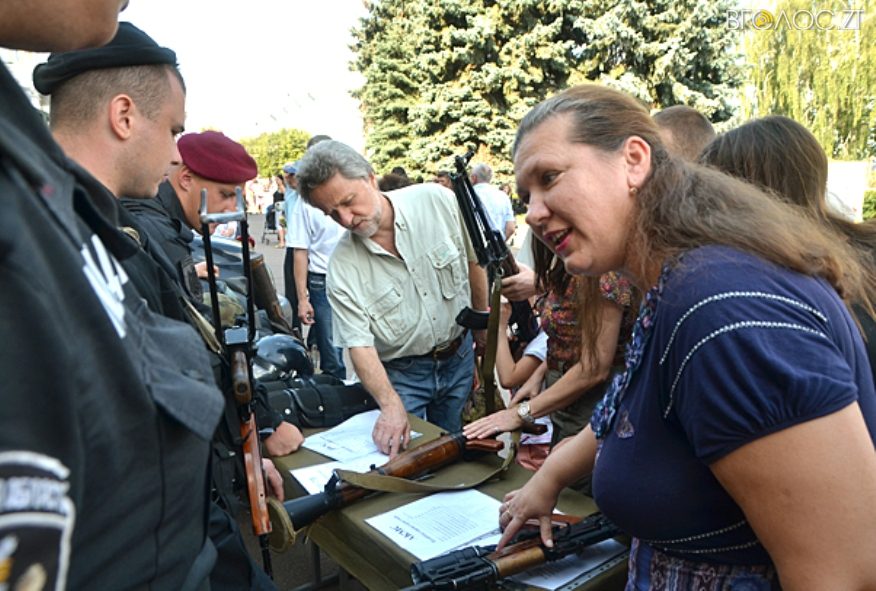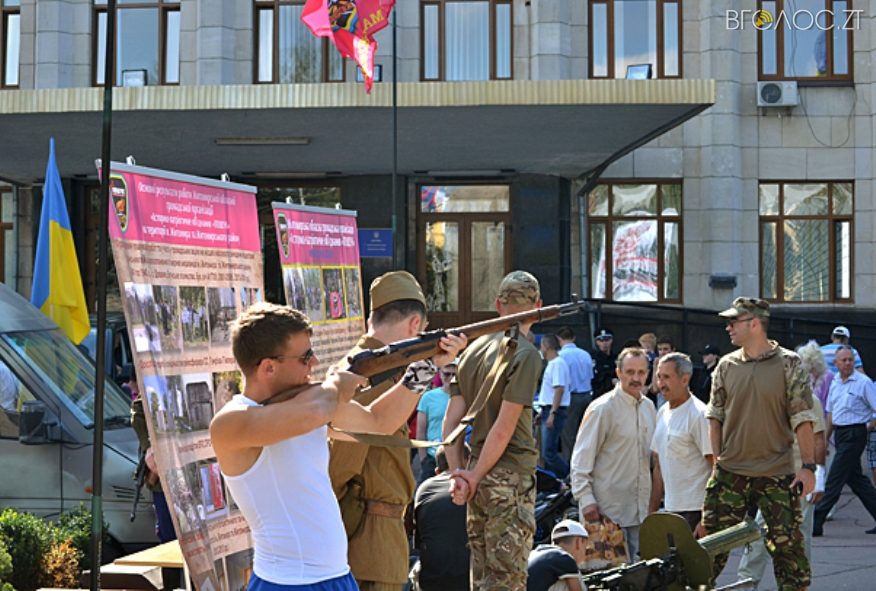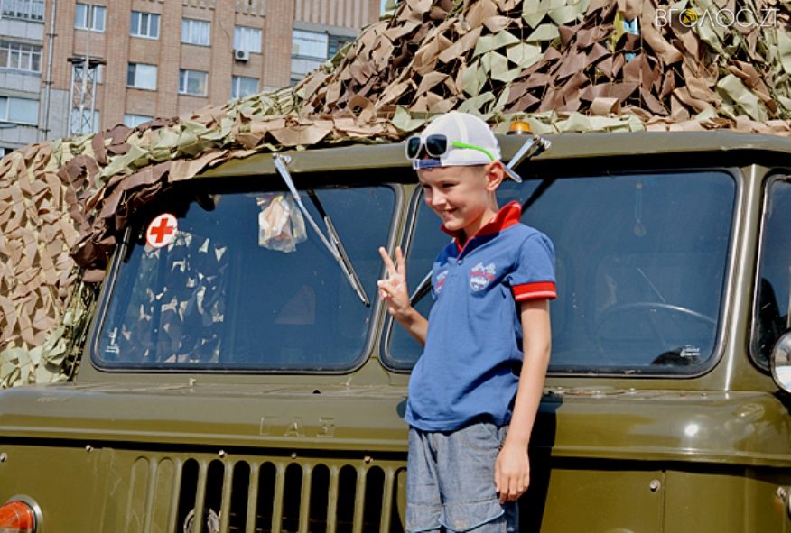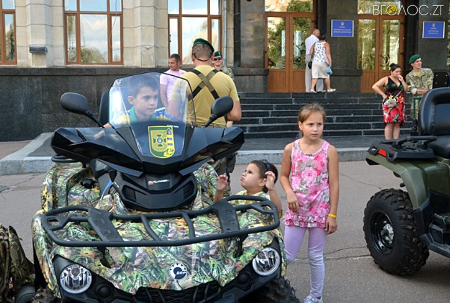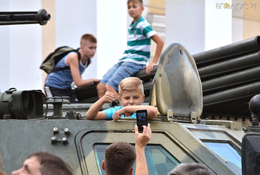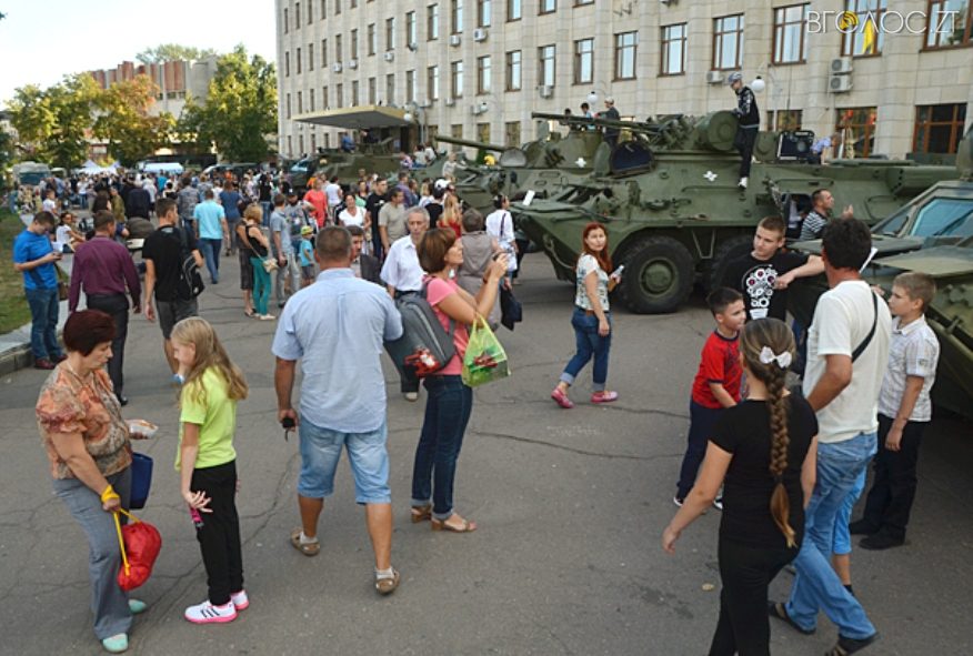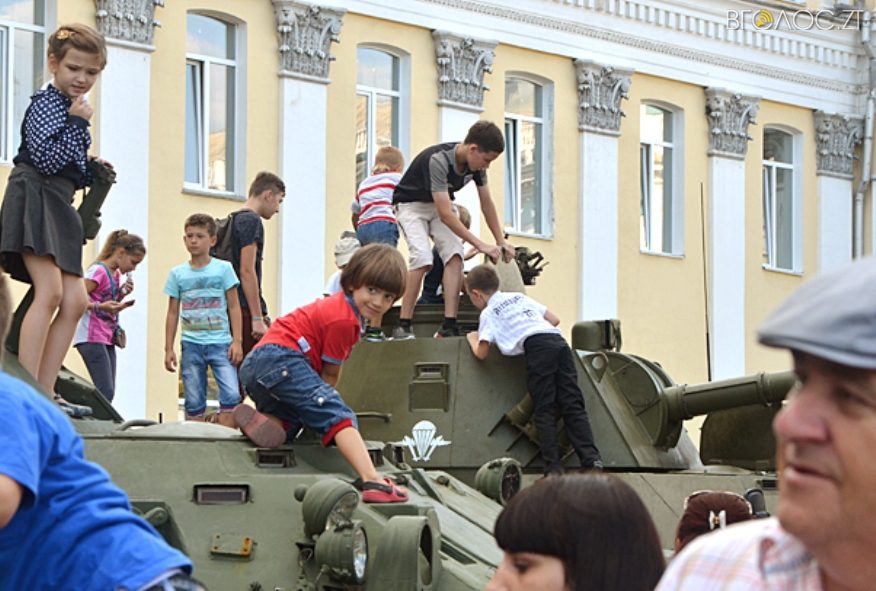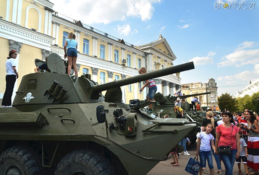 Десантники 95-ої аеромобільної бригади приїхали у центр міста технікою, що нині використовуються на навчальному полігоні для підготовки захисників України до виконання завдань у зоні проведення антитерористичної операції: броньовані «Кугуари», «БТРи», «Град» та «Хамер».