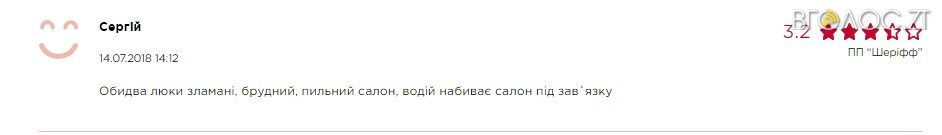 Згідно аналітичного модуля сервісу “Revision” з кінця червня до системи надійшло 276 оцінок діяльності приватних перевізників. З них, позитивних 115 оцінок та негативних – 161. Окрім відгуків, які можуть залишити пасажири, робота приватних перевізників оцінюється за п’ятьма показниками. Це зокрема, чистота салону, обслуговування (кондуктора/водія), дотримання графіку руху, технічний стан транспортного засобу та задоволеність транспортом міста.