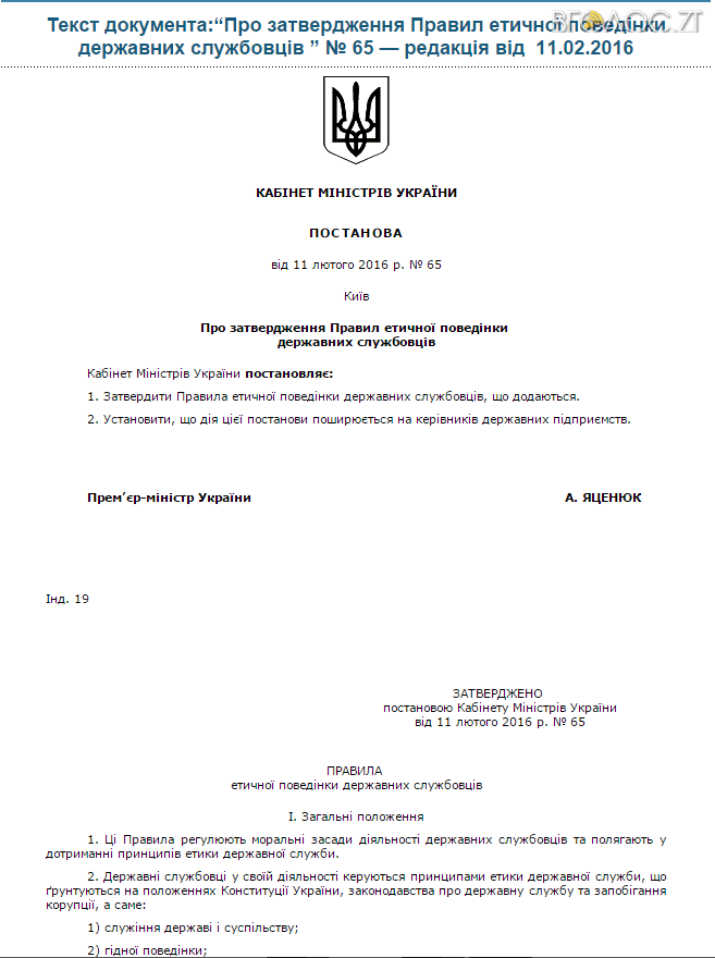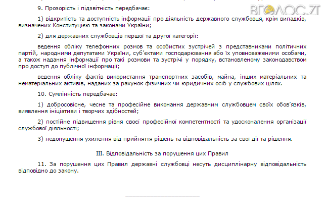 Для повіряння наводимо також копії сторінок нових «Правила етичної поведінки державних службовців».
