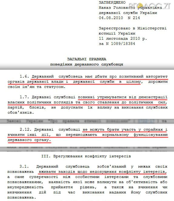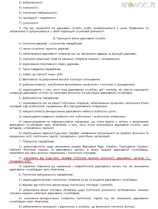 По суті ж, якщо уважно прочитати загальні правила поведінки державного службовця від 2010 року, то пункт нових правил щодо утримання від публічного критики влади є таким собі узагальнення одразу кількох попередніх. Формулювання лише стало більш жорстким. Хоча саме дієслово «утриматися» вживалося й у тому документі.