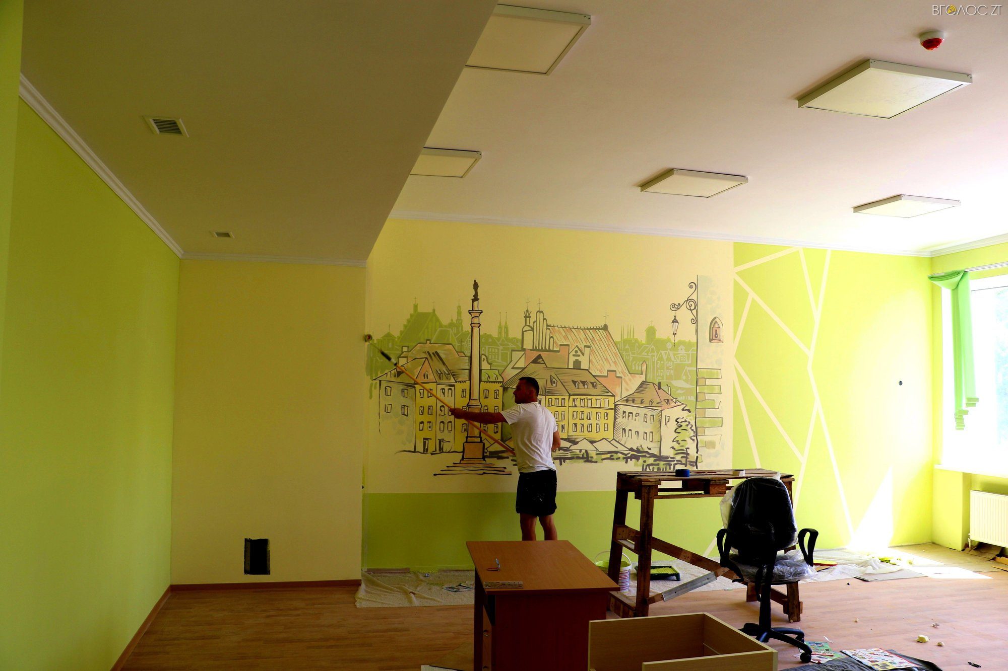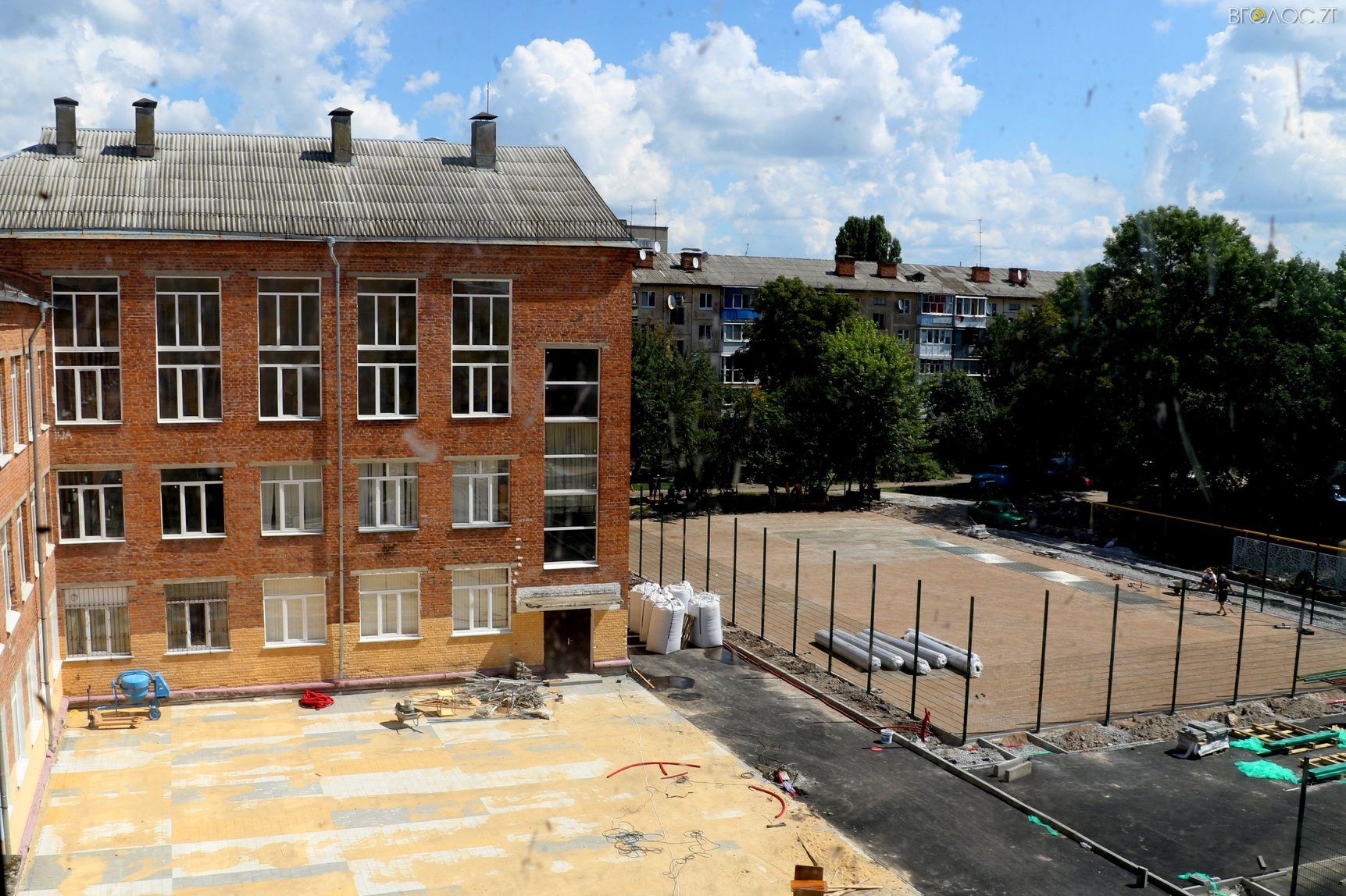 «Нині підрядник на завершальному етапі робіт: практично завершено облаштування фасаду та внутрішніх приміщень. Стіни в коридорах та класах оздоблюють дизайнерськими малюнками, почали монтувати меблі, встановлювати двері та перила на сходах. Також будівельники активно взялися за благоустрій прилеглої території: кладуть тротуарну плитку, встановлюють паркани, готують майданчик під спортивні тренажери, починають монтаж футбольного поля зі штучним покриттям», – йдеться у повідомленні.