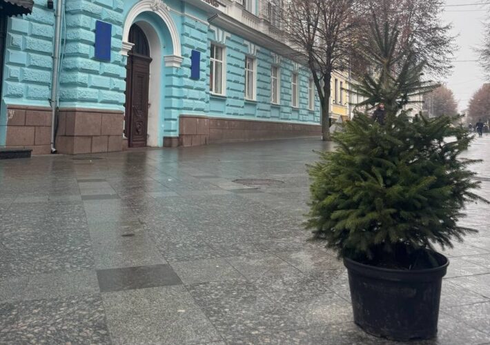 Житомирські комунальники встановили ялинки у горщиках на Михайлівській