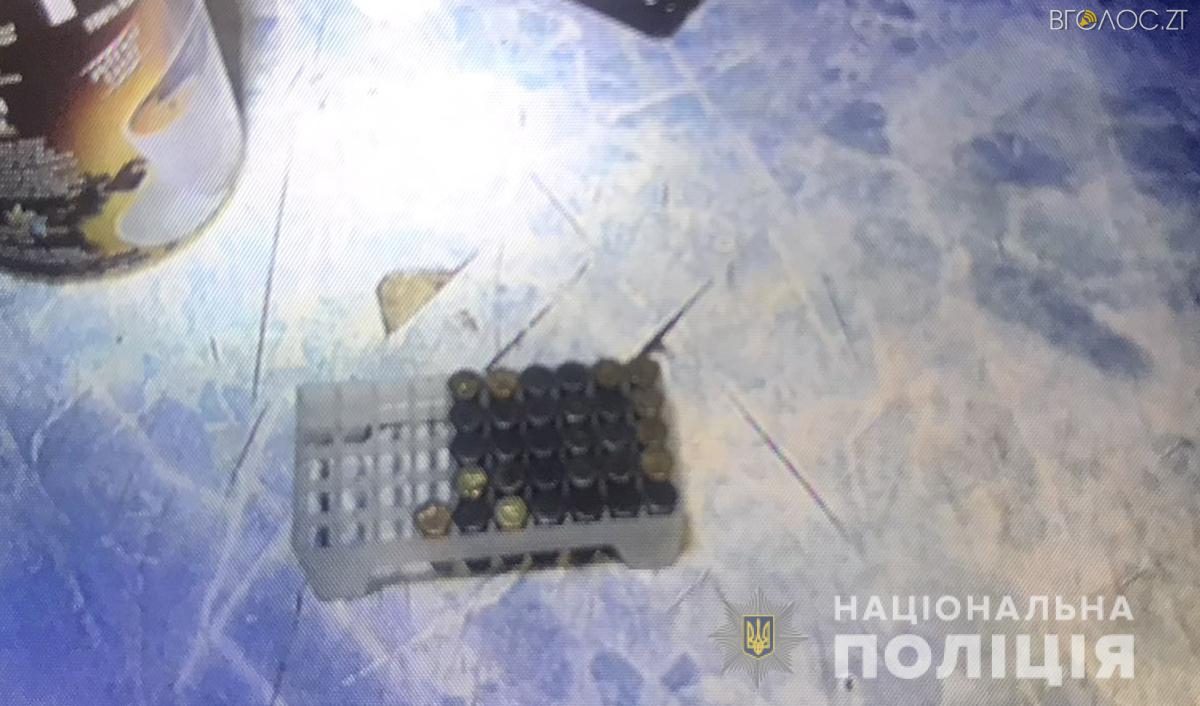 У ході проведення невідкладного обшуку за місцем тимчасового проживання затриманого поліцейські вилучили незареєстровану зброю та набої до неї, а також інші предмети, які мають значення для слідства.