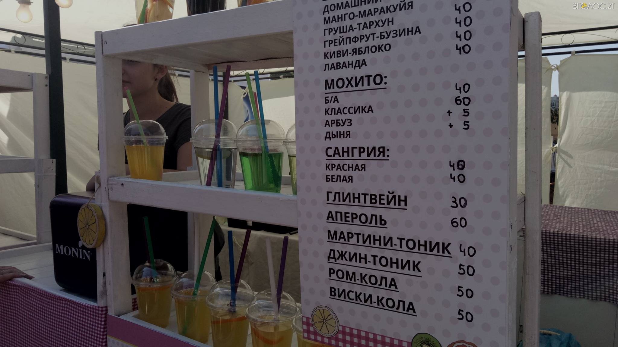 Організатор фестивалю вуличної їжі Ірина Маренкова переконана, що порушення ніякого немає: коктелі, які продаються у даному наметі, мають вміст алкоголю не більше 8,5 градусів.