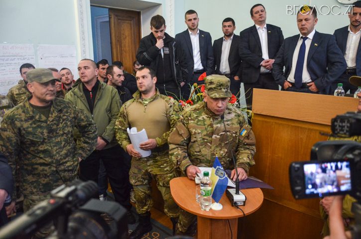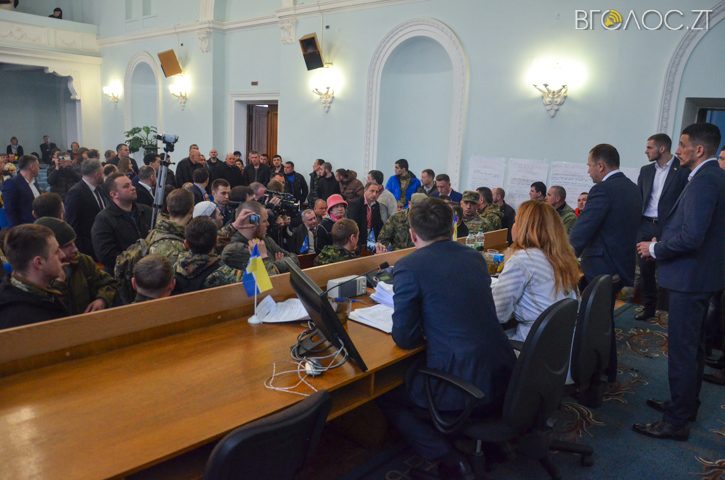 Чоловіки у військовій формі зайшли до сесійної зали Житомирської міської ради під час сесійного засідання 9 березня та вимагали надати їм слово. Міський голова Сергій Сухомлин оголосив 10-хвилинну перерву та запропонував їм висловитися під час перерви.