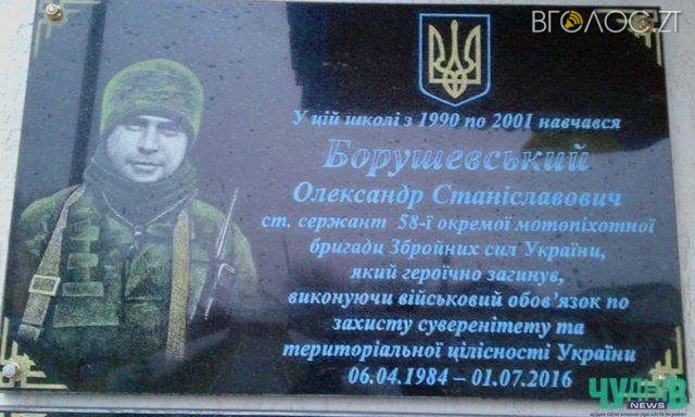 На будівлі Чуднівської загальноосвітньої школи № 2 відкрили меморіальну дошку на честь воїна-героя, учасника антитерористичної операції Олександра Борушевського, який віддав своє життя, захищаючи Україну. Про це повідомила прес-служба райдержадміністрації.