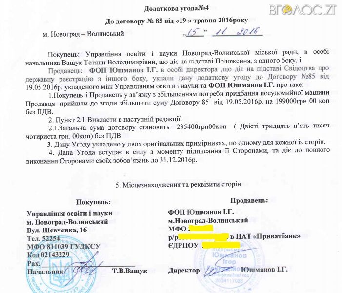 Що стосується деталей цієї трансакції, то 25 листопада ФОП Юшманов І.Г. отримав 199 000 грн від згаданого управління за посудомийну машину для потреб загальноосвітньої школи №4.