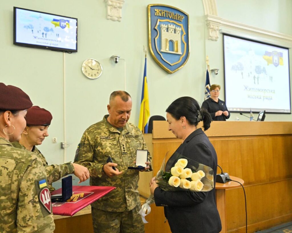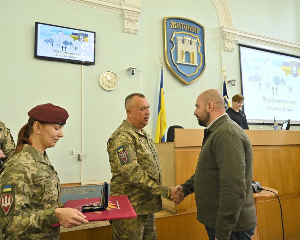 Депутати Житомирської міської ради від фракції «Сила і Честь» Любов Цимбалюк та Іван Мартинчук отримали відзнаки «Хрест Пошани» від керівництва 95 ОДШБ. Їх вручили під час чергової сесії.