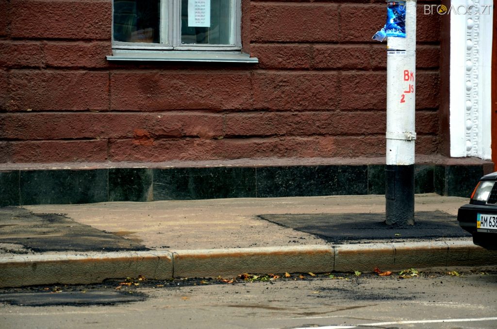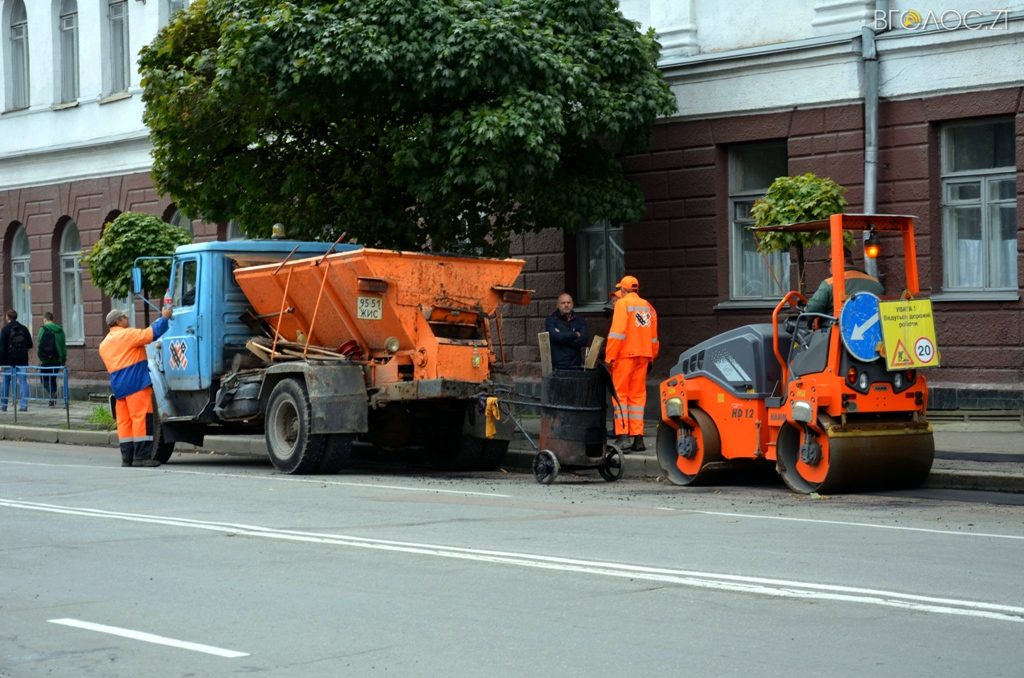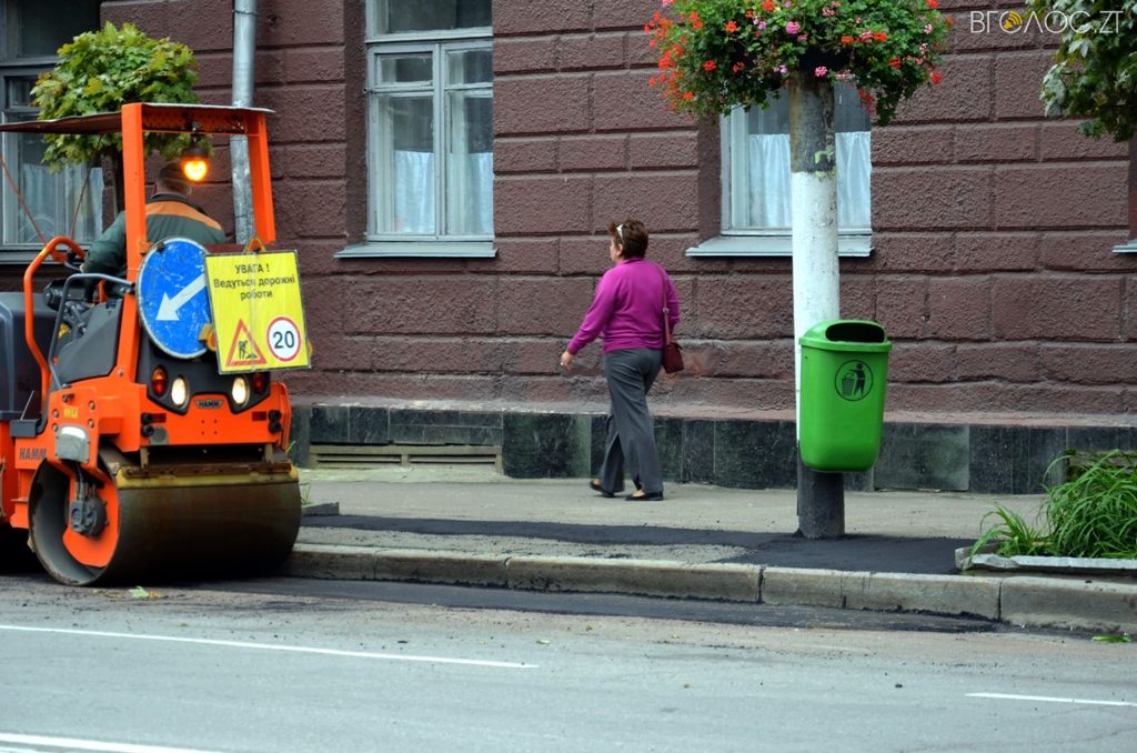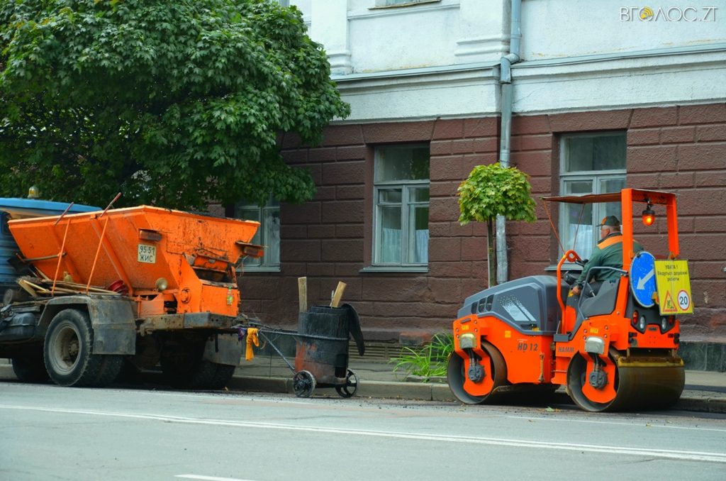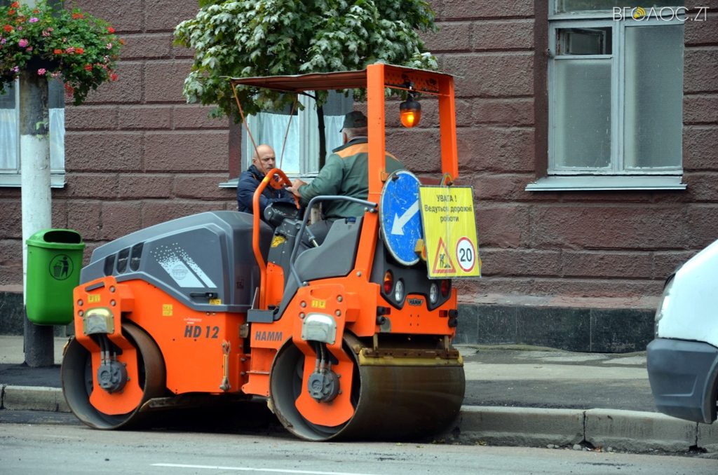 Співробітники комунального підприємство «Управління автомобільних шляхів» ремонтують асфальтне покриття по Великій Бердичівській та Київській. Переважно здійснюють роботи там, де свого часу клала тротуарну плитку скандально відома «Ві. Ай. Пі. Будівельна компанія».