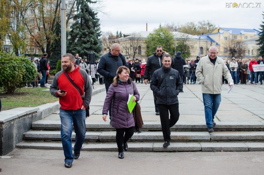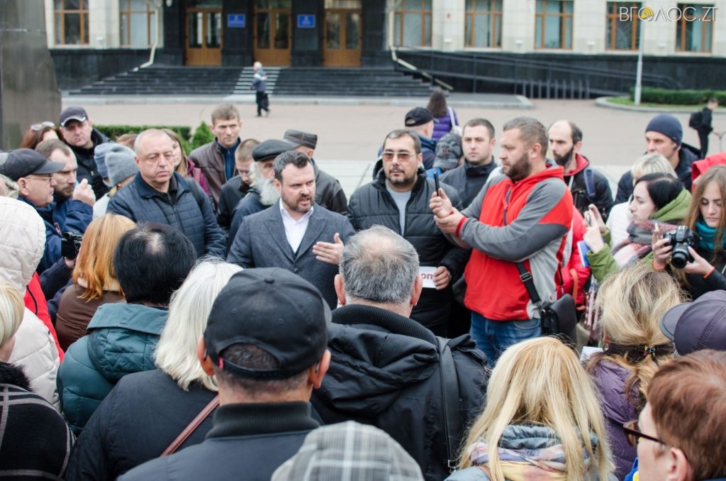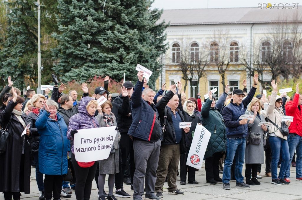 Звернення із вимогою скасувати закони 128 та 129 уповноважена підприємцями група занесла до облдержадміністрації. Втім, ані представники влади, ані посадовці облдержадміністрації так і не відреагували на протест. В ОДА пояснили, що Віталій Бунечко перебуває у Маріуполі. Одночасно із цим, представники влади не пояснили, чому мітинг проігнорувала його заступниця Наталія Остапченко. До пікетувальників вийшов заступник голови обласної ради Сергій Крамаренко.