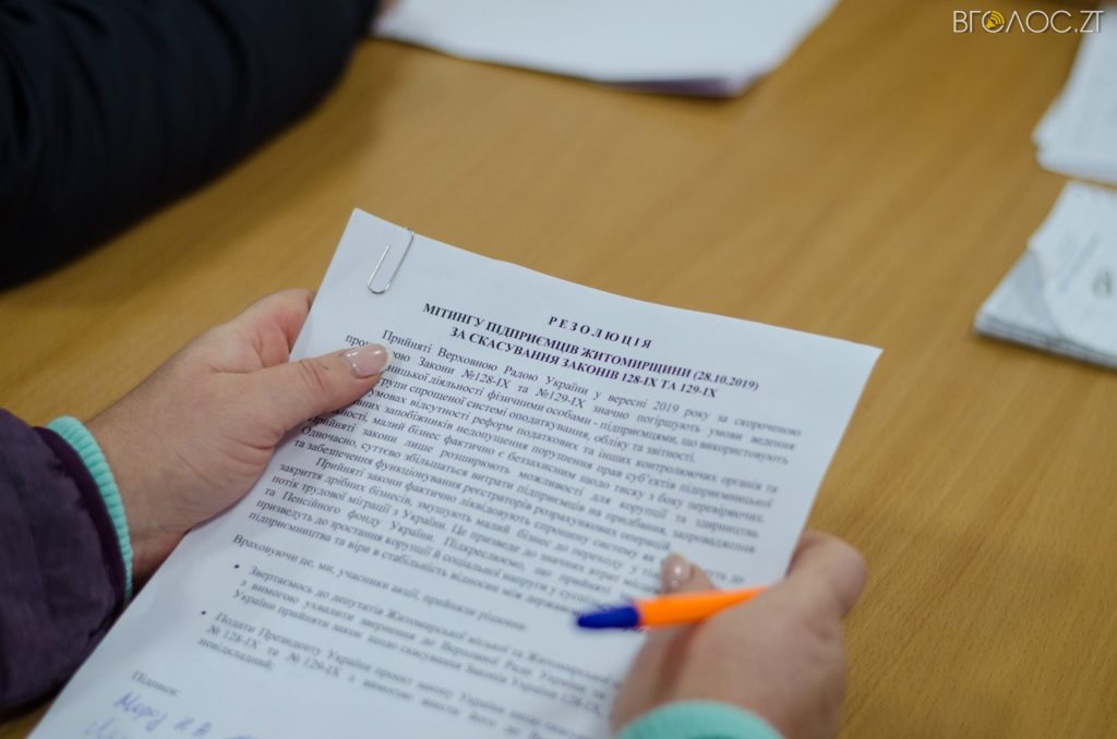 Ані голова Житомирської облдержадміністрації Віталій Бунечко, ані його заступниця Наталія Остапченко не вийшли до підприємців, які 28 жовтня пікетували ОДА. Представники бізнесу вимагали скасувати закони №№128 та 129 щодо введення касових апаратів та знищення спрощеної системи оподаткування.