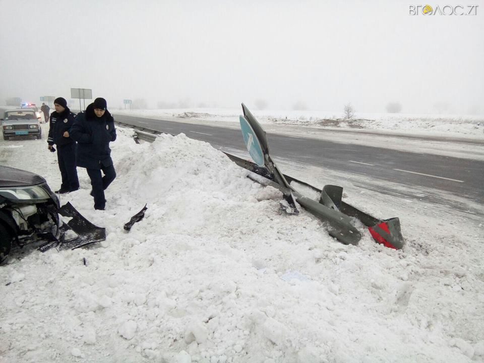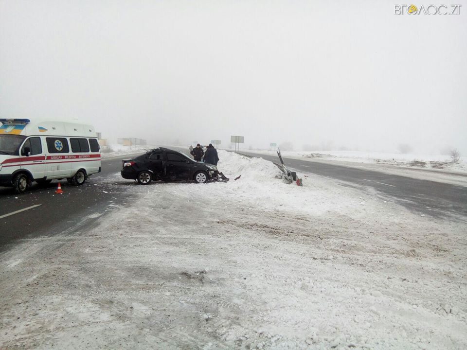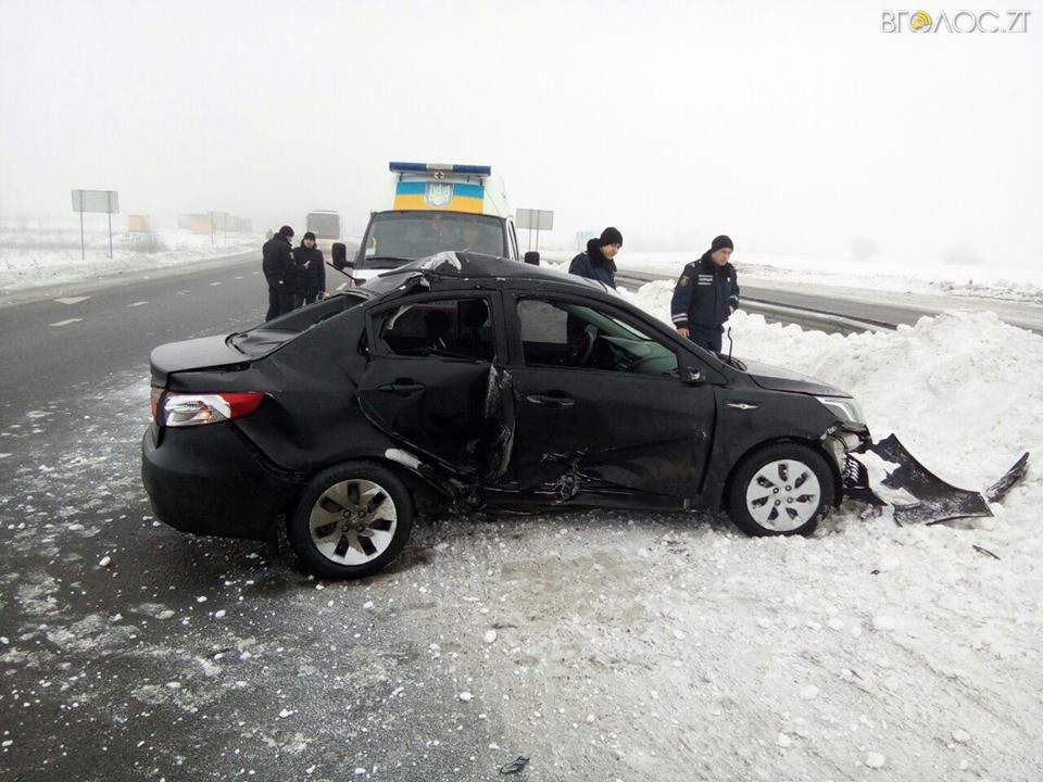 «За попередньою інформацією, автомобіль «Kia Rio» рухався у напрямку Рівного. Водій, ймовірно, заснув за кермом. Пасажир почав штовхати його, щоб привести до тями. Коли водій отямився, різко вивернув кермо вліво, щоб уникнути з’їзду з проїжджої частини. Але через ожеледицю автомобіль розвернуло. Водій не впорався з керуванням і авто врізалося у колесовідбійник. У результаті ДТП водій отримав забій грудної клітини та струс головного мозку. Його доставили до лікарні. Пасажир поїхав супроводжувати. Останній отримав незначні пошкодження, бо знаходився на задньому сидінні авто», – розповіла прес-офіцер.