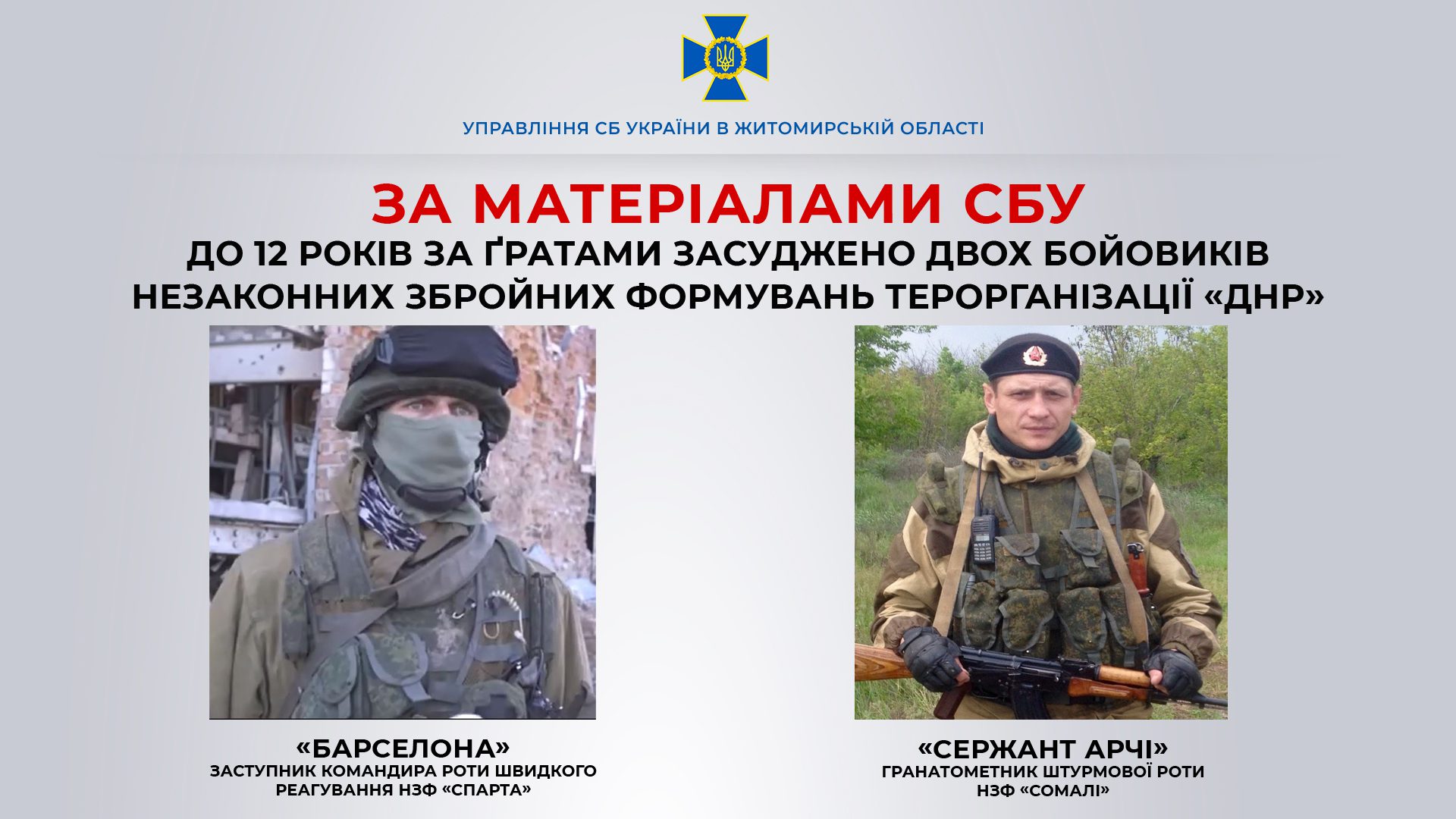 Двох зрадників, які перейшли на бік ворога і воювали у незаконному угрупованні «днр» у Житомирі заочно засудили до 12 років тюрми. Про це повідомили у прес-групі УСБУ області.