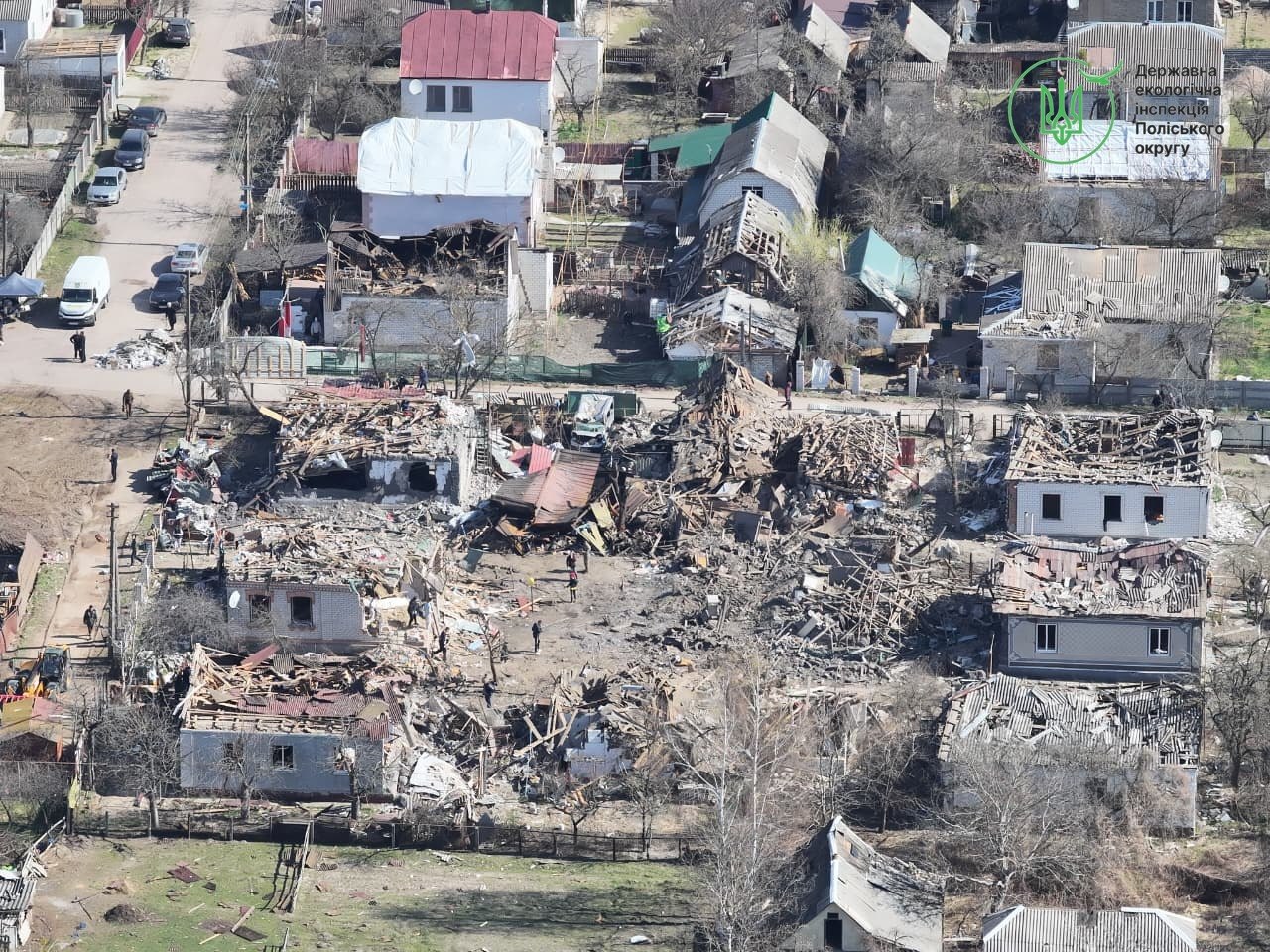 Екоінспектори обстежують наслідки ракетно-дронового удару на півночі Житомирщини
