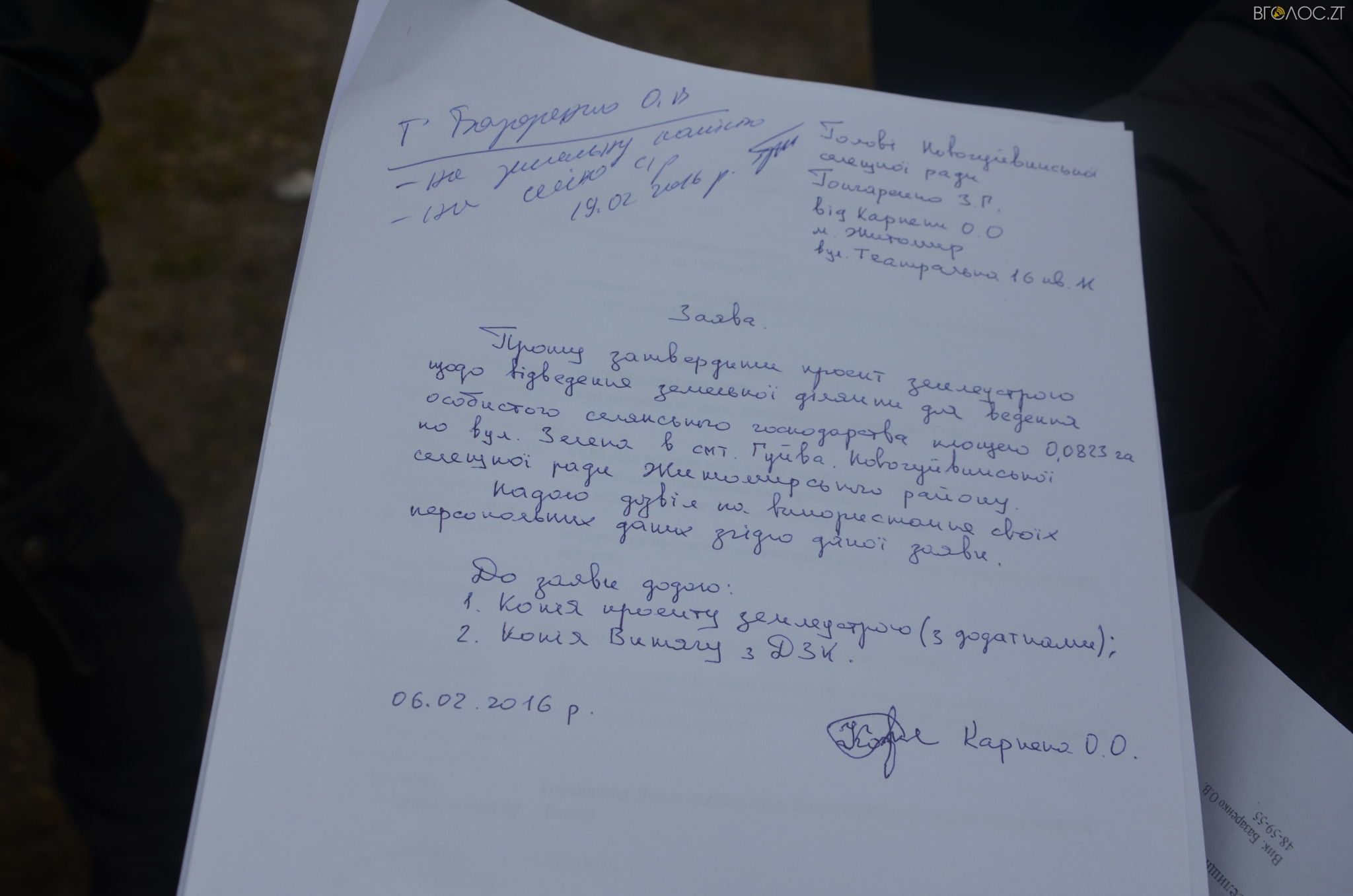«Я хотів придбати цю земельну ділянку ще за минулої каденції, але у Новогуйвинській селищній раді мені сказали, що немає такої процедури», – розповів «Вголос.Zt» Олег Карпека.