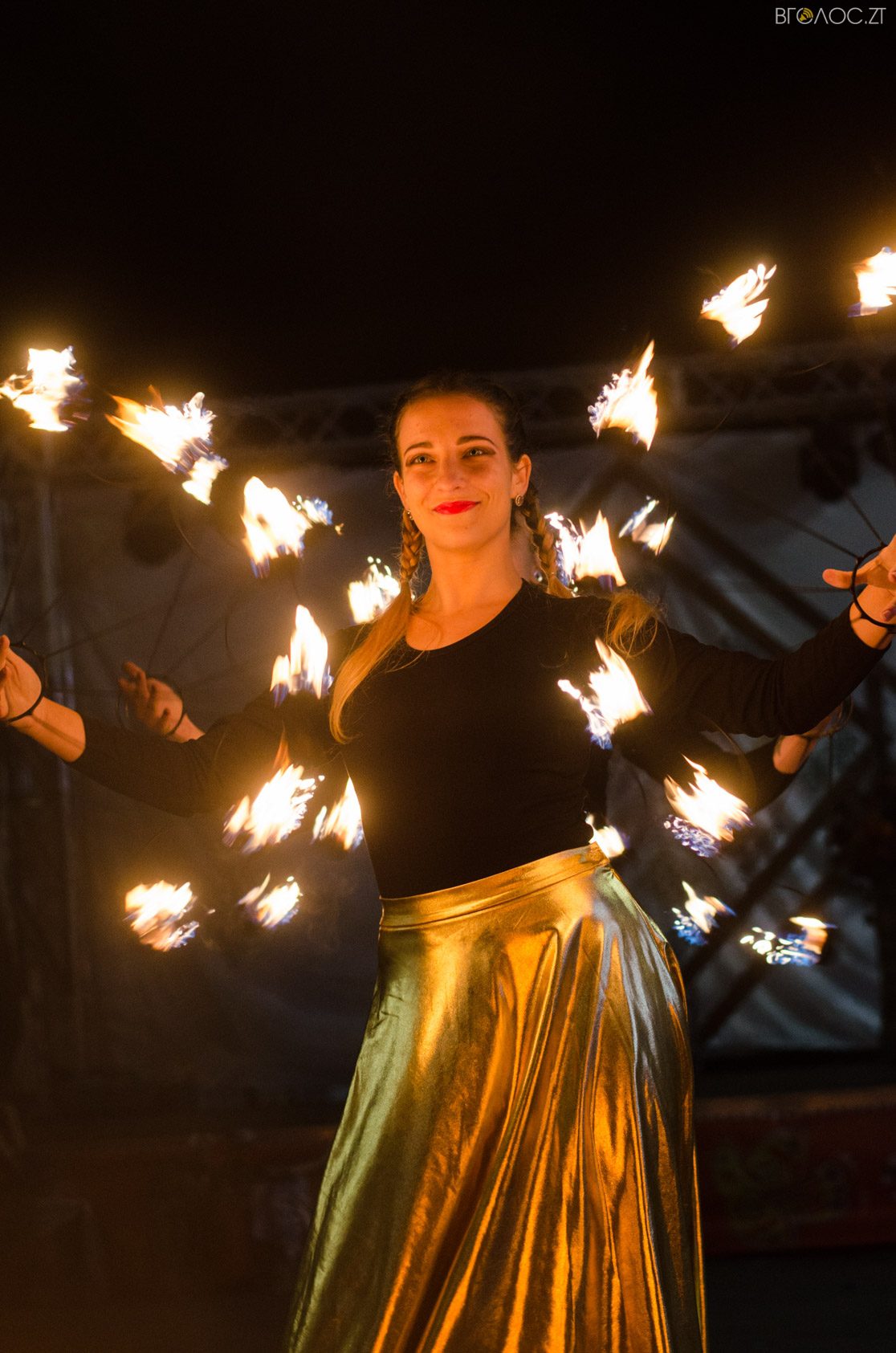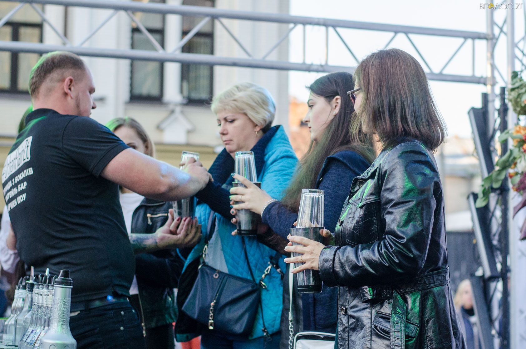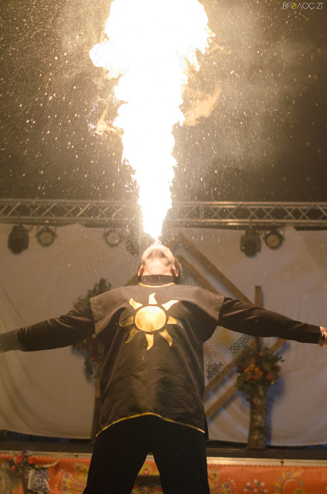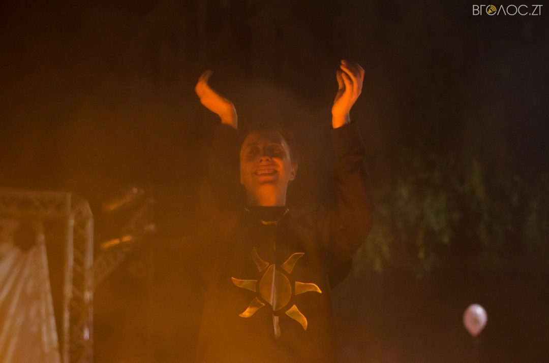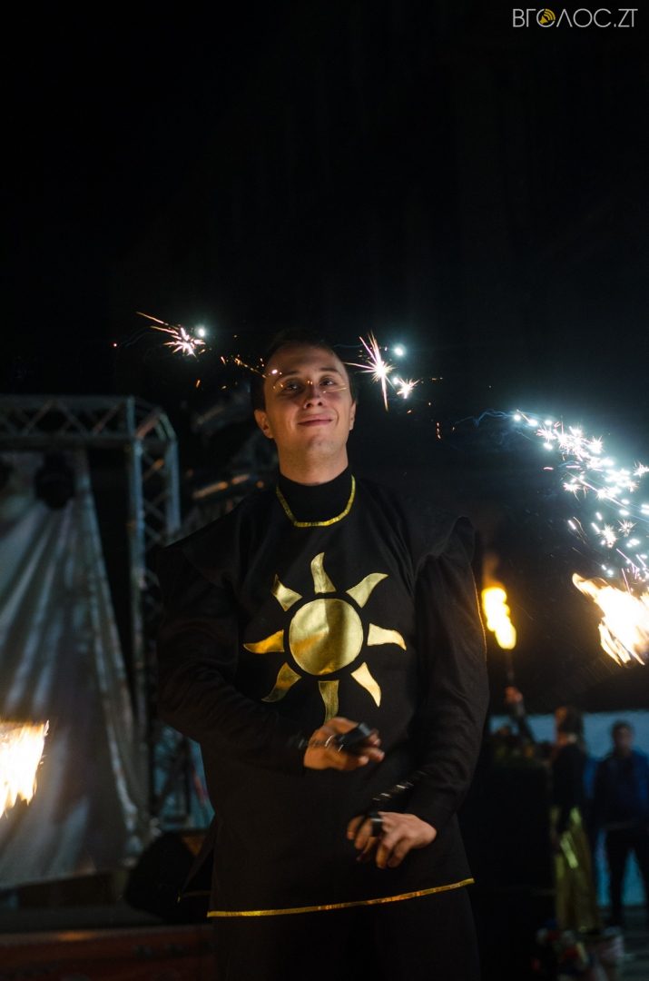 Житомиряни, які зібралися 14 жовтня на Михайлівській, одразу після святкування Покровського весілля побачили яскраве вогняне шоу від студії вогню “Дім сонця” та  бармен–шоу від «Urban Flair».