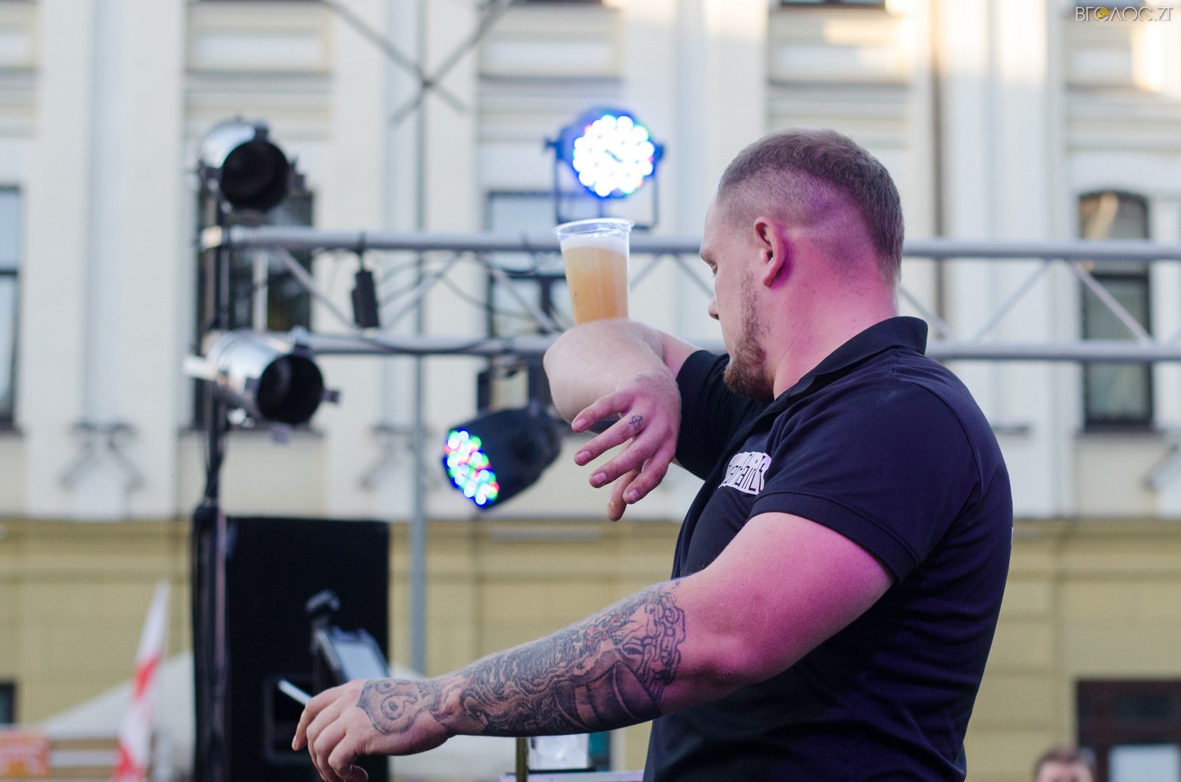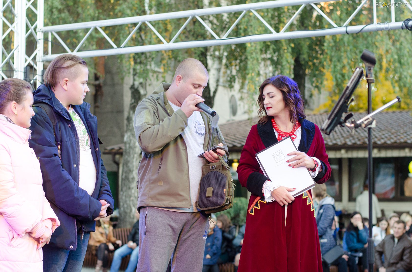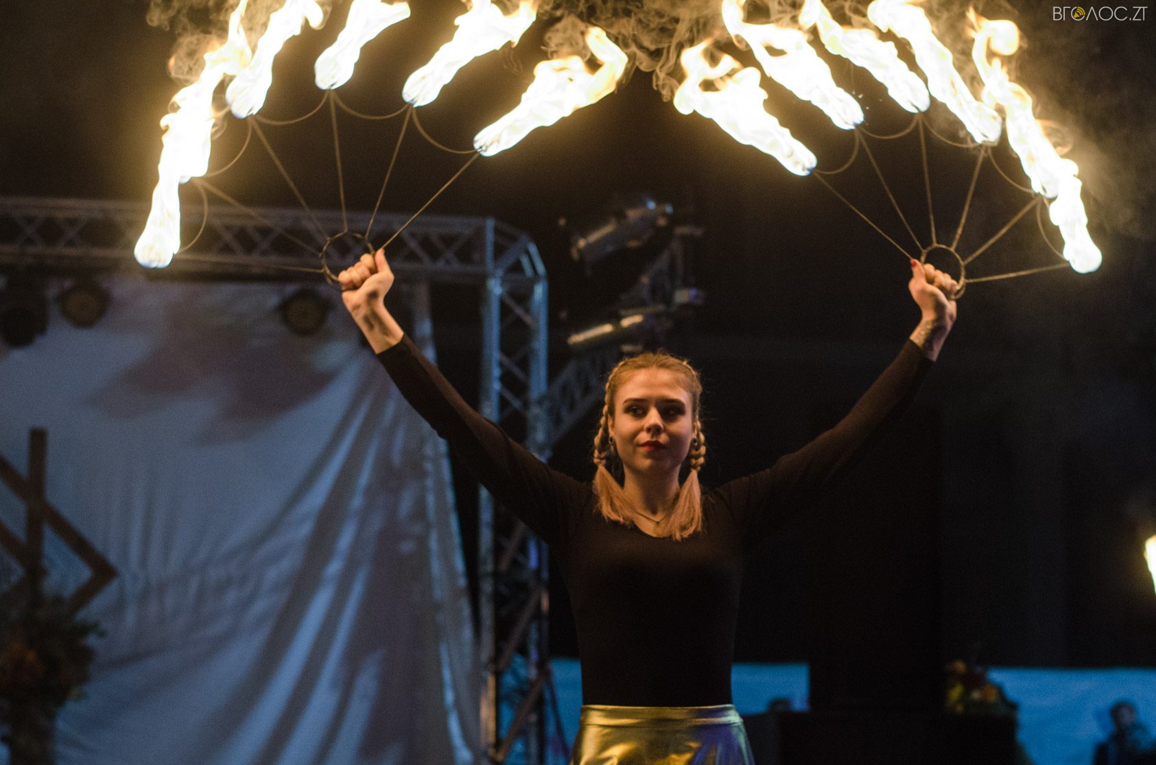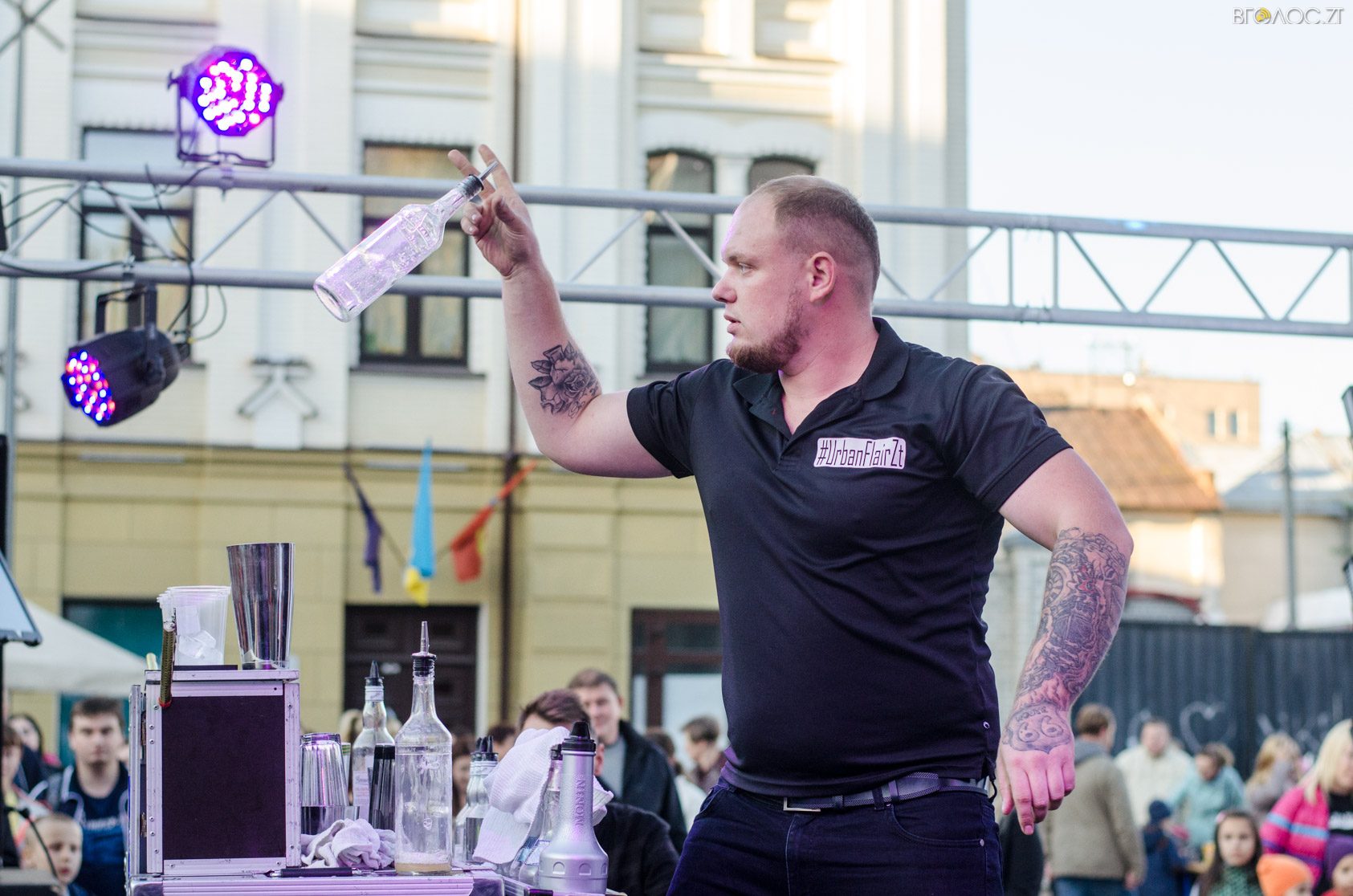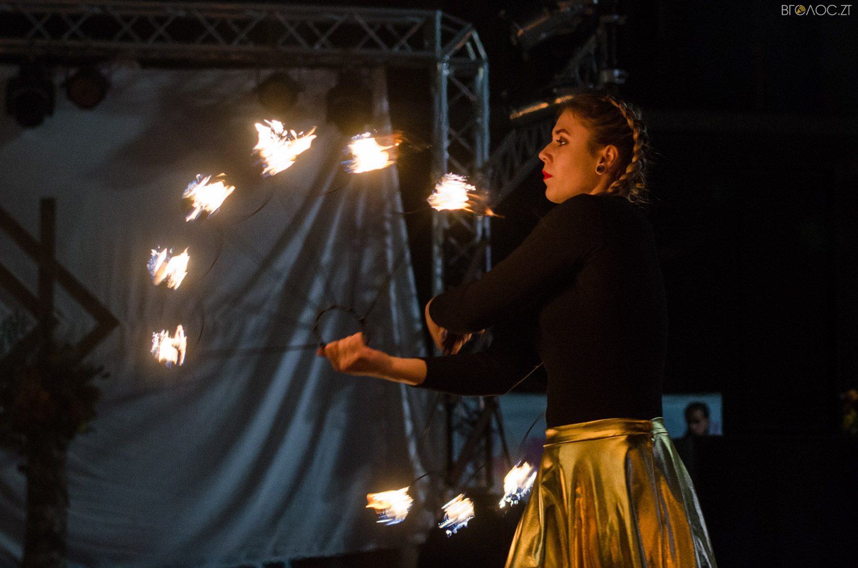Житомиряни, які зібралися 14 жовтня на Михайлівській, одразу після святкування Покровського весілля побачили яскраве вогняне шоу від студії вогню “Дім сонця” та  бармен–шоу від «Urban Flair».