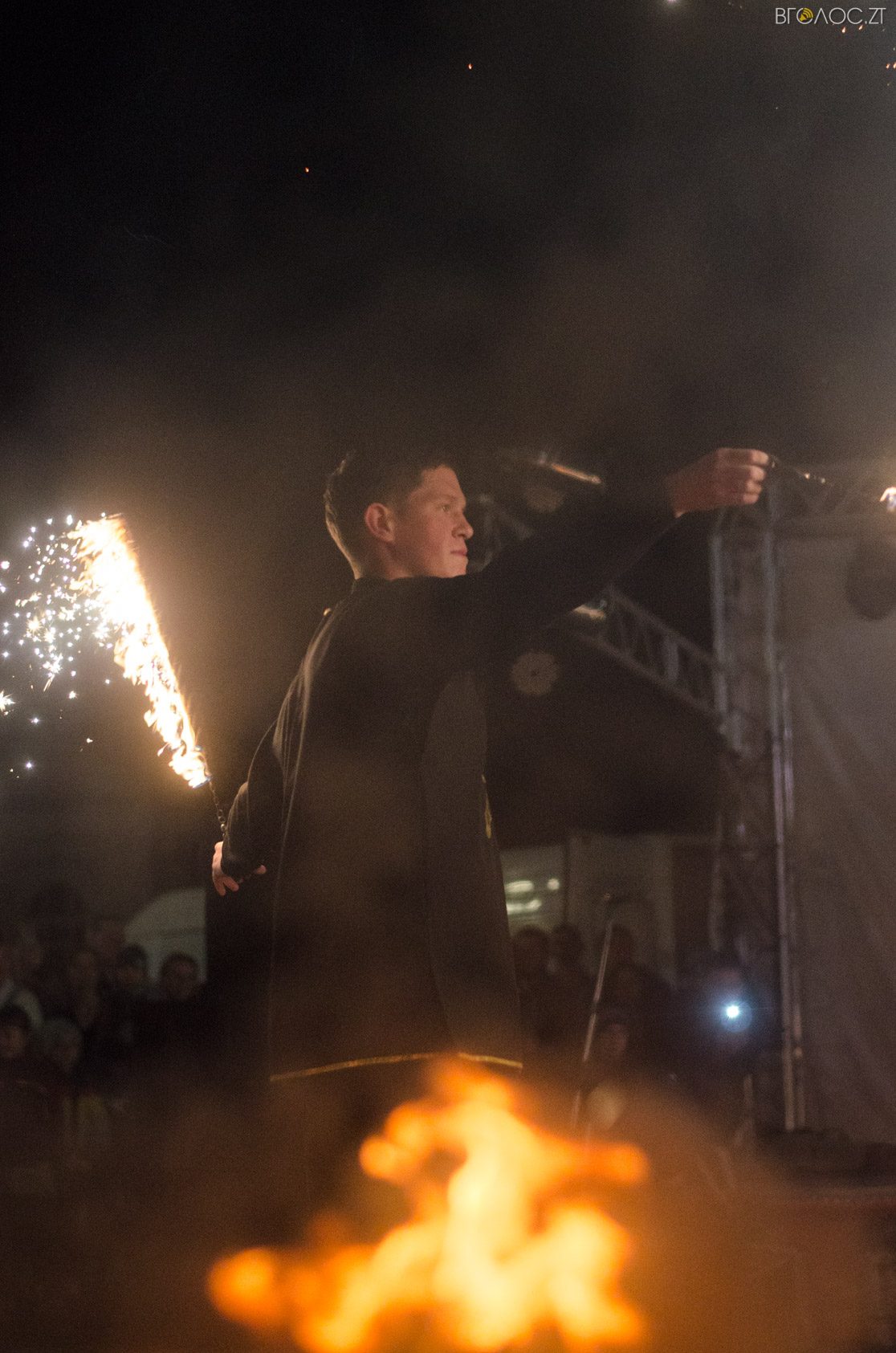 Фаєр-шоу від студії вогню «Дім Сонця» завершило святкування Дня захисника України, Дня козацтва та свята Покрови у Житомирі