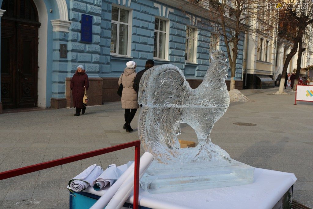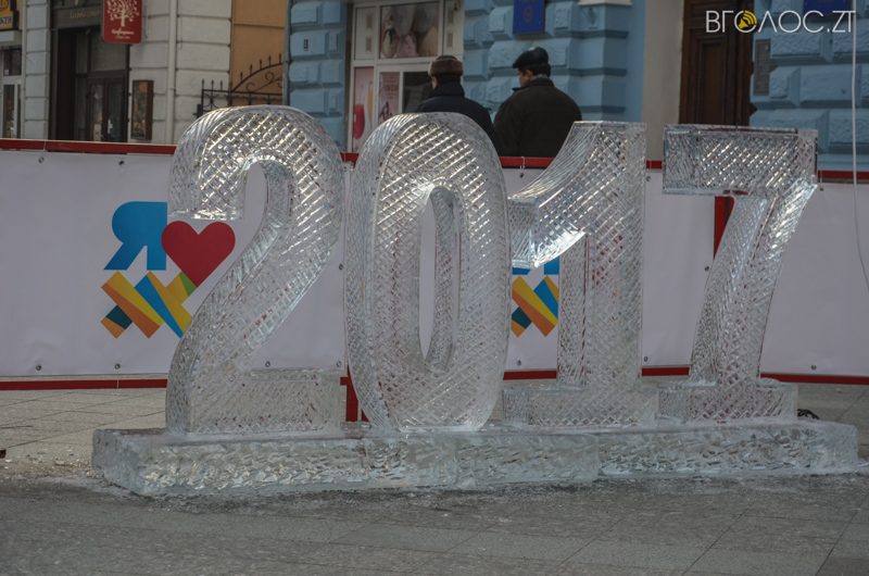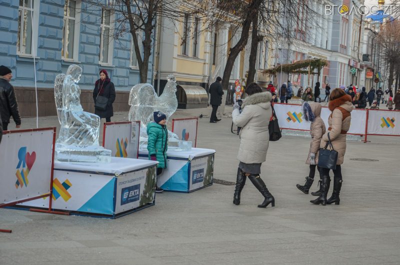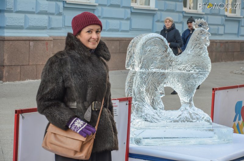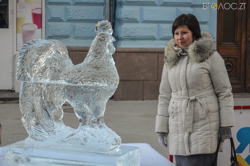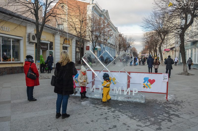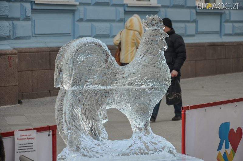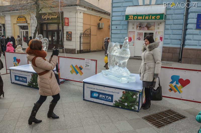 Чотири льодові фігури – янгол, півень, цифри «2017» та логотип Житомира, який поки ще не затвердили, 30 грудня встановили на вулиці Михайлівській. Житомиряни почали фотографуватися на їх фоні ще до завершення монтажу.