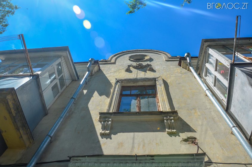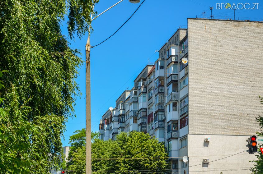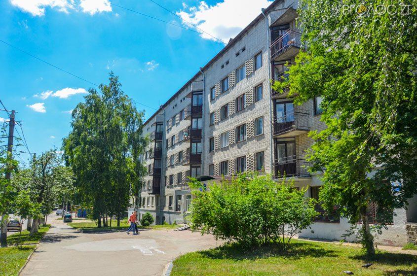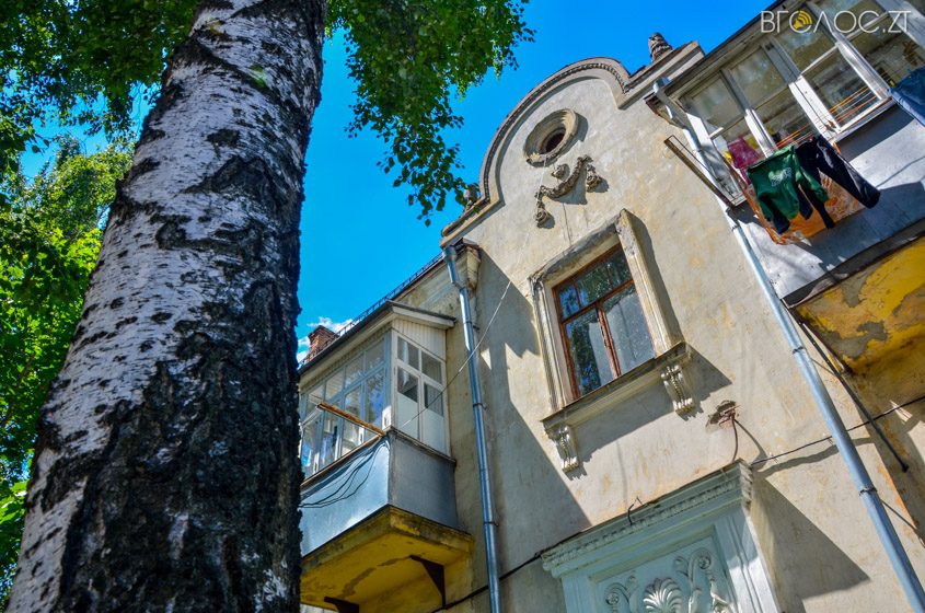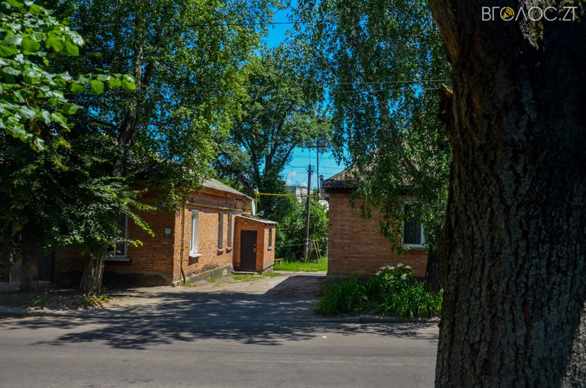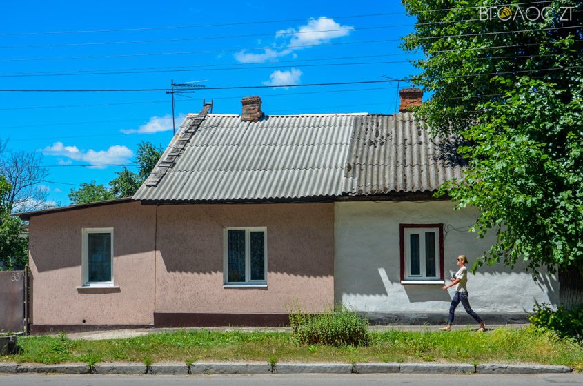 На Шевченка поруч із багатоповерхівками розташовуються невеликі будинки на один чи кілька поверхів із оздобленими фасадами та зеленими насадженнями навколо.