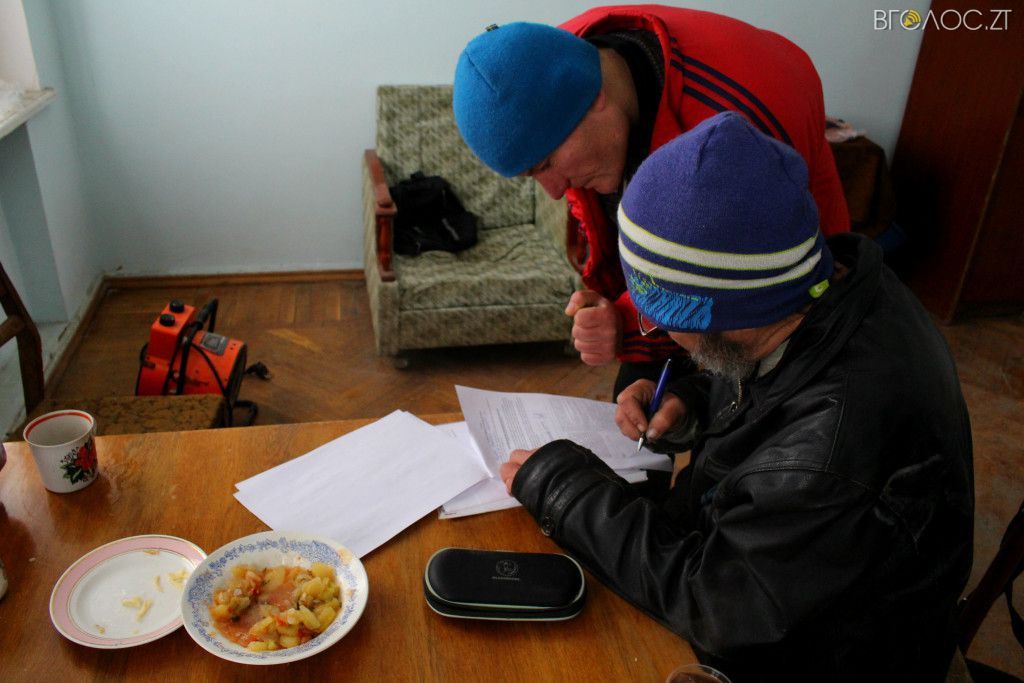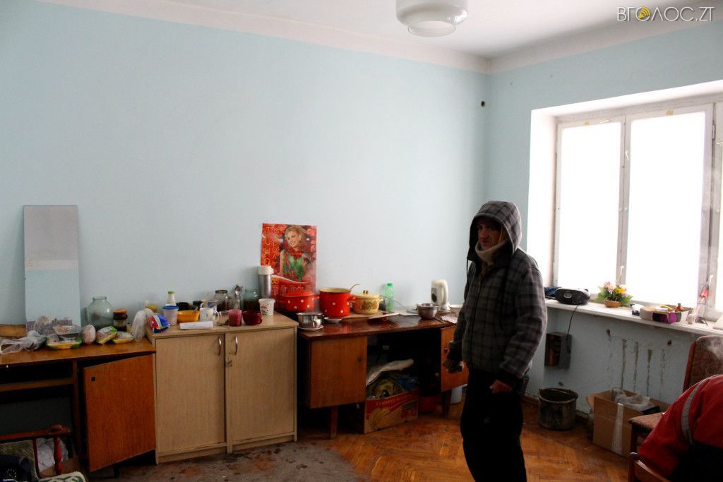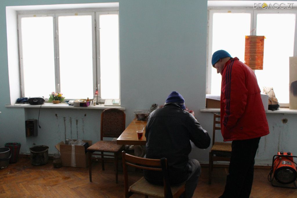 У нічліжці вже день перебуває Геннадій. До цього він жив у під’їзді. Зараз написав заяву на поновлення документів і має дах над головою. Розповідаючи свою історію, п’є гарячий чай із пластмасового стаканчика. У кухні холодно. Взагалі у будинку немає опалення. У кімнатах, де люди сплять, є обігрівачі. В усіх інших кімнатах та коридорах при такій температурі з рота видно пару. Проте, ніхто про це навіть і не говорить, адже людям, які спали в такі морози на вулицях, і так вже є головне: спати у теплі.