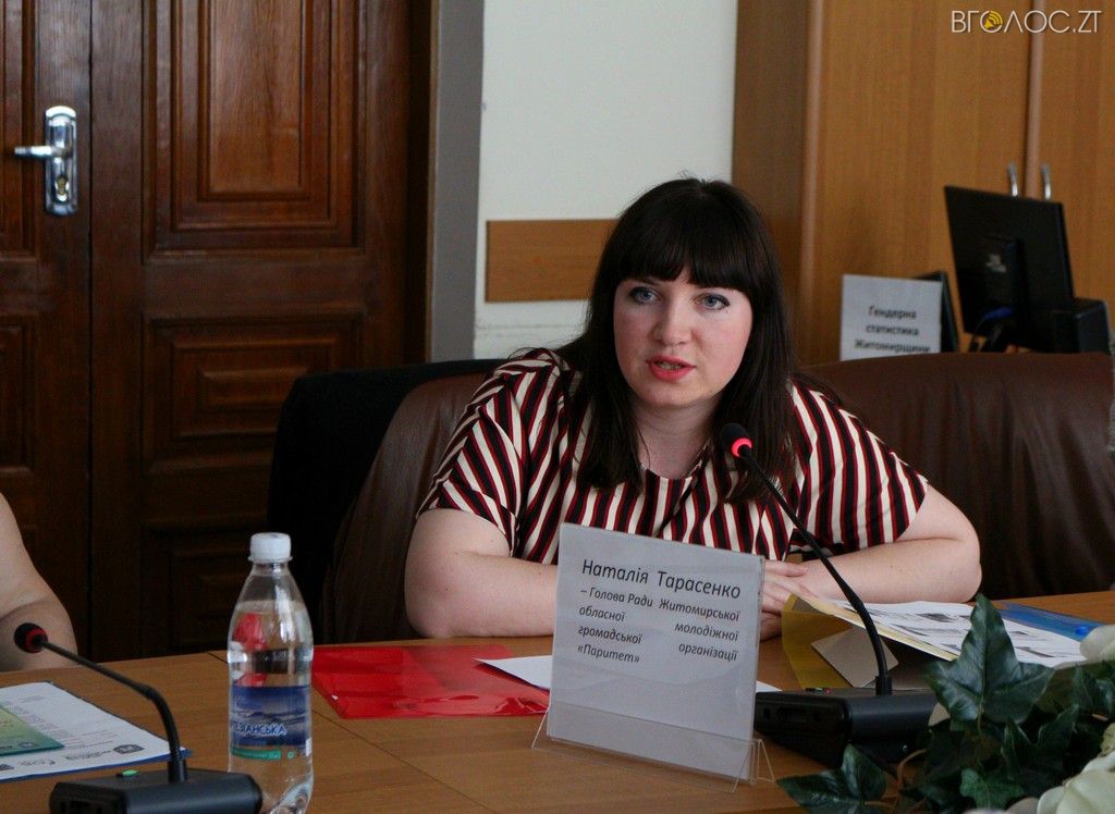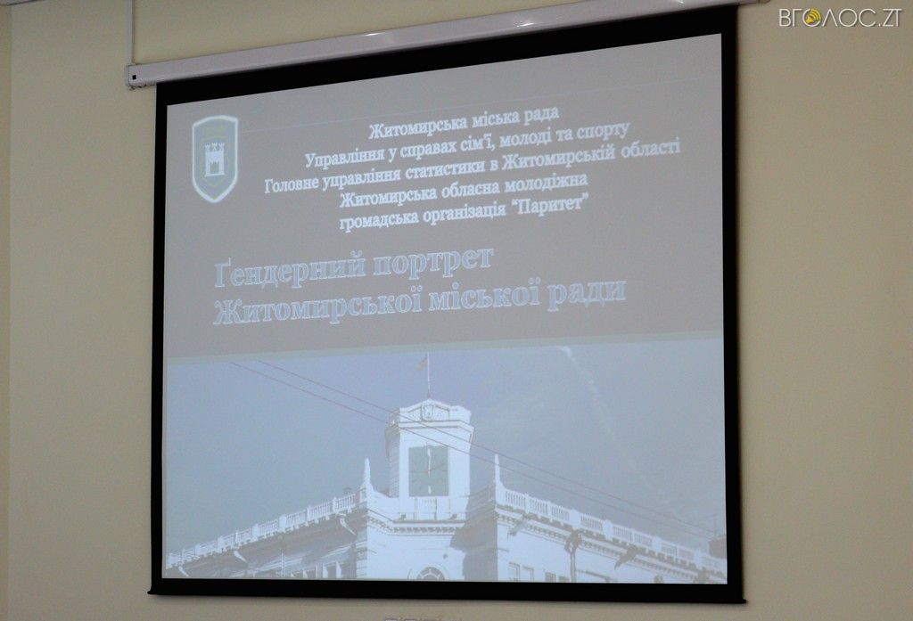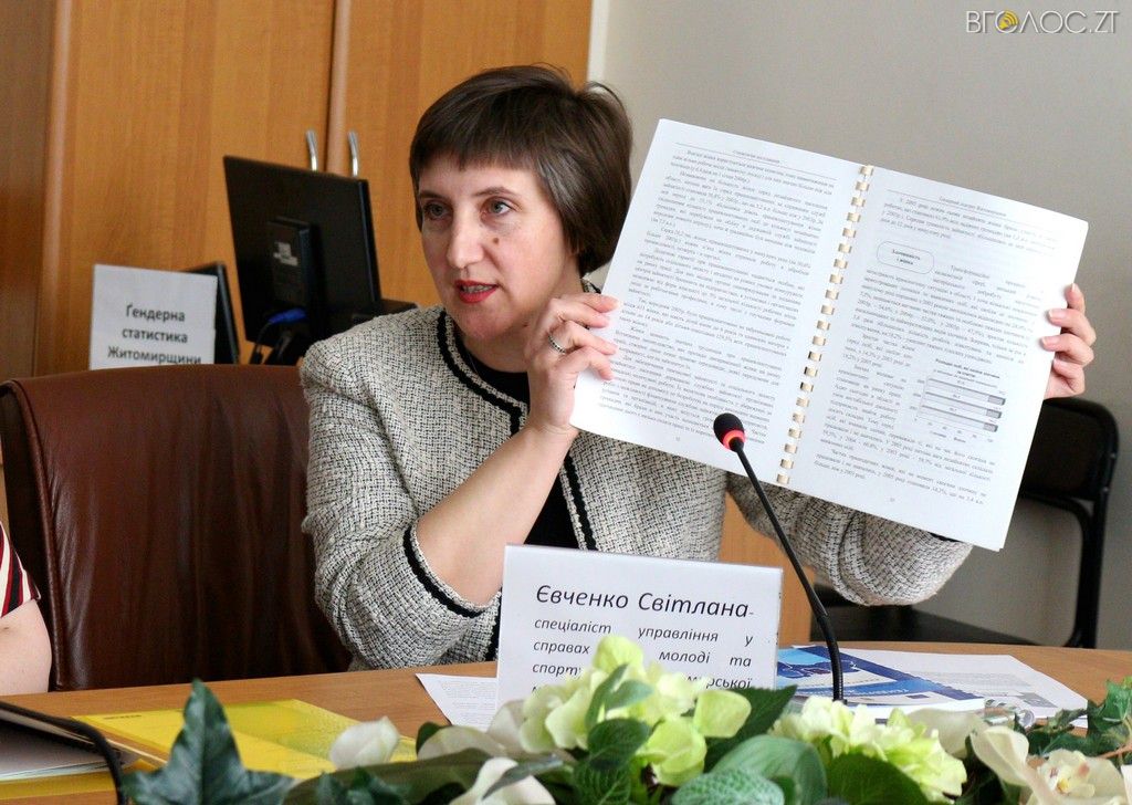 Начальниця управління у справах сім’ї, молоді та спорту Житомирської міської ради Ірина Ковальчук представила гостям Житомира гендерний портрет Житомирської міської ради.