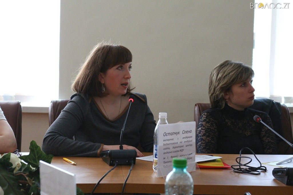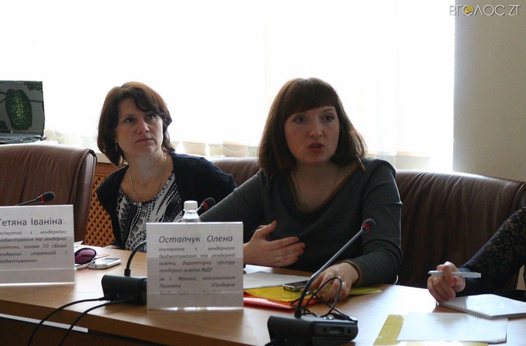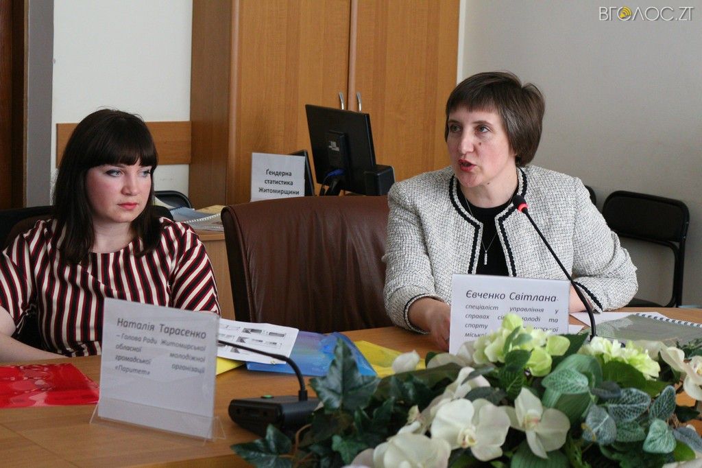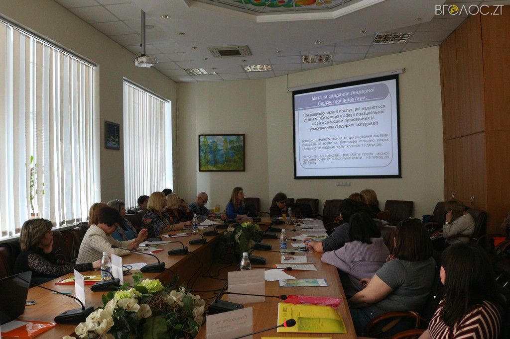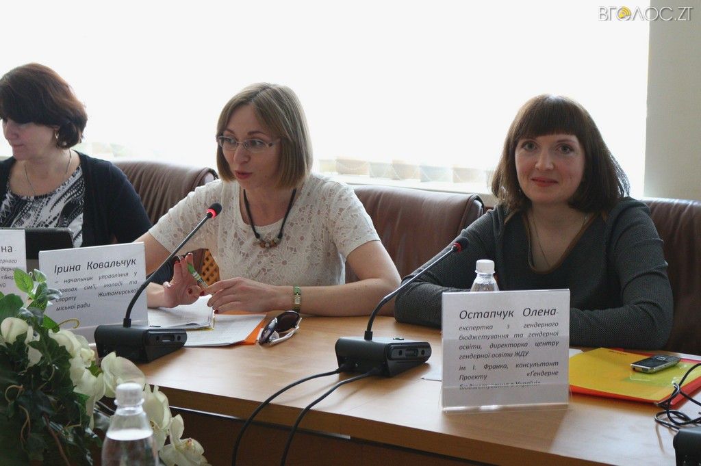 Спеціалістка управління у справах сім’ї, молоді та спорту Житомирської міської ради Світлана Євченко показала презентацію про “Впровадження гендерної бюджетної ініціативи у сфері позашкільної освіти за місцем проживання у Житомирі”, а експертка з гендерного бюджетування та гендерної освіти, директорка центру гендерної освіти ЖДУ ім. І. Франка Олена Остапчук презентувала гендерні бюджетні аналізи обласних цільових програм протидії захворювання на туберкульоз та боротьби з онкологічними захворюваннями.