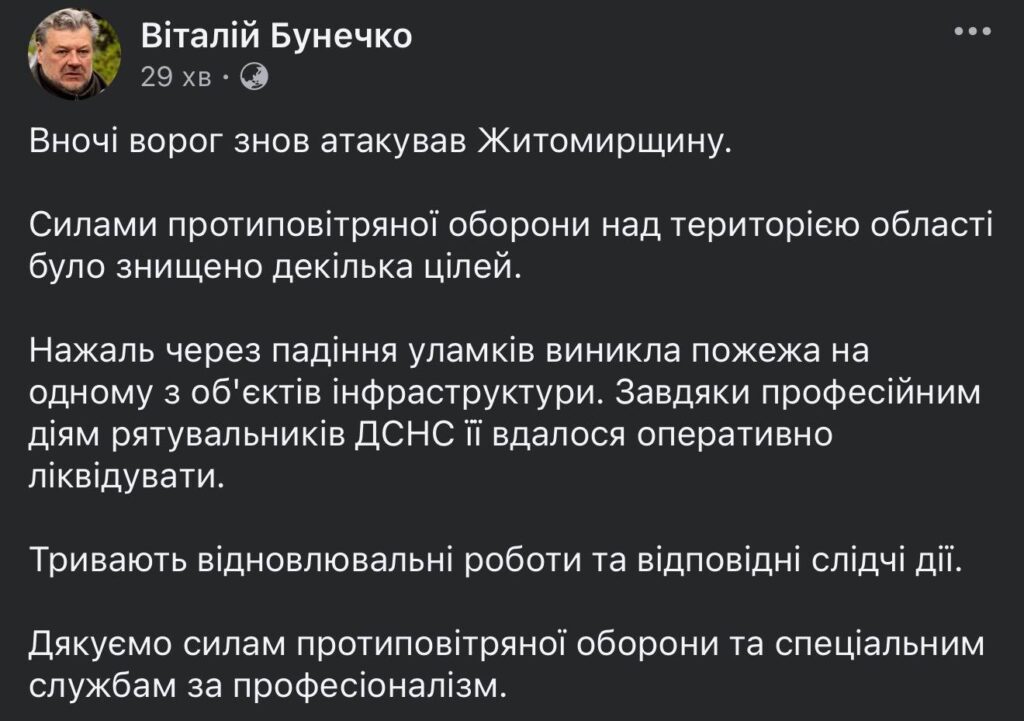 Вночі ворог знов атакував Житомирщину.